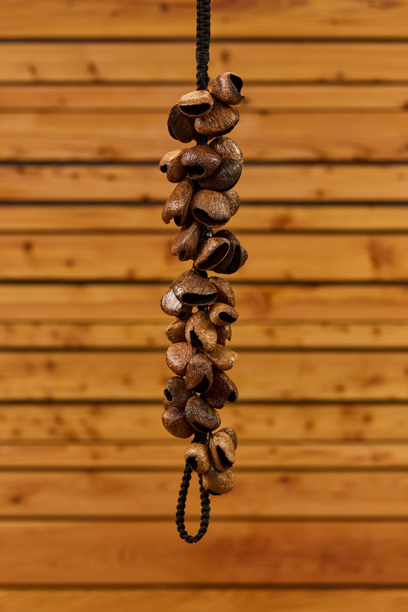 This model realistically reproduces the sound of a waterfall, with a clear and crisp tone. Its pangi seed shell construction gives it a natural look and a subtle brown color.
