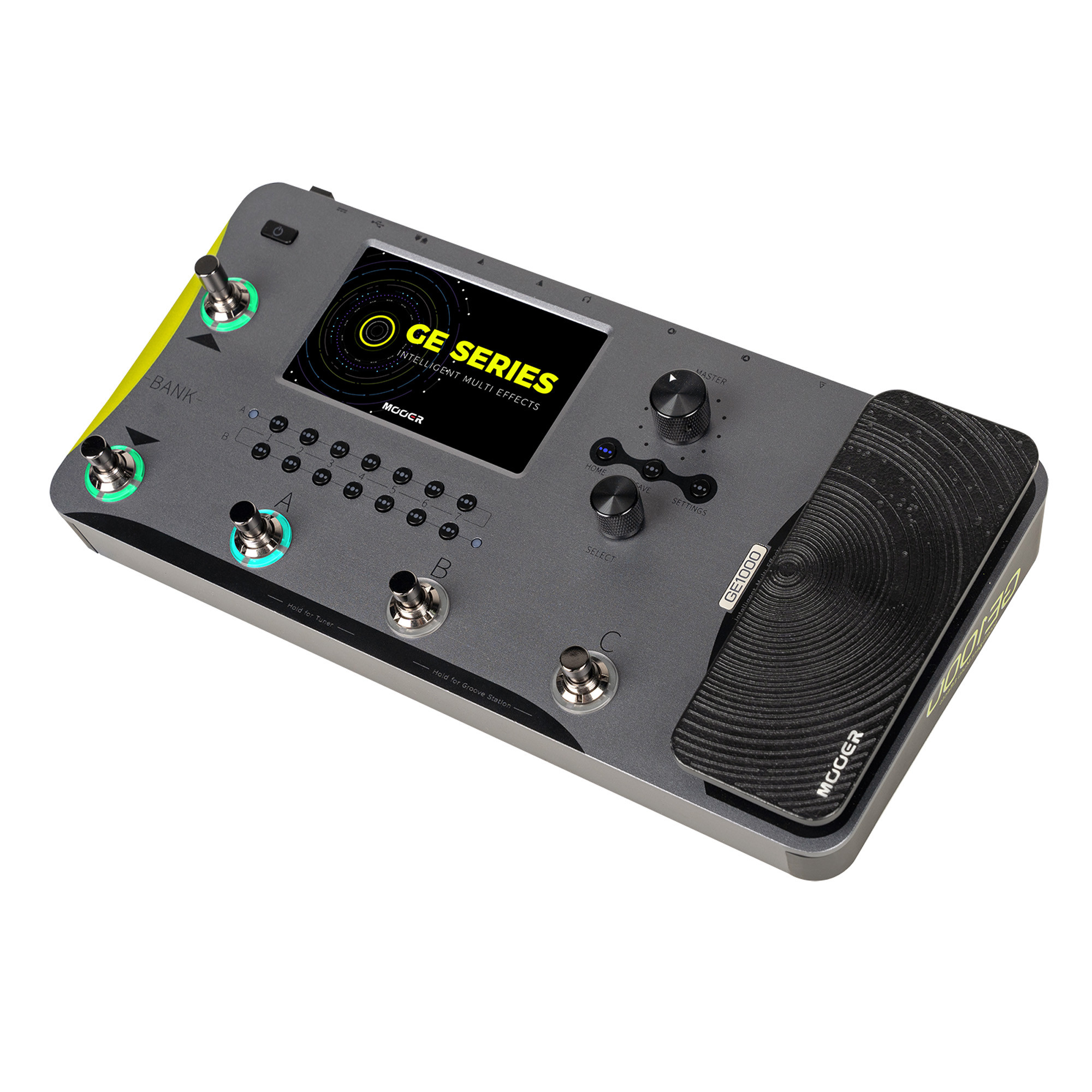 The Mooer GE1000 is a black multi-effects pedalboard designed to offer great versatility to guitarists looking for a complete, modern tool that is easy to integrate into their setup. It supports MNRS files from the GE cloud, with IR samples taken from real amplifiers for authentic tones, as well as third-party IR files up to 2,048 sampling points.