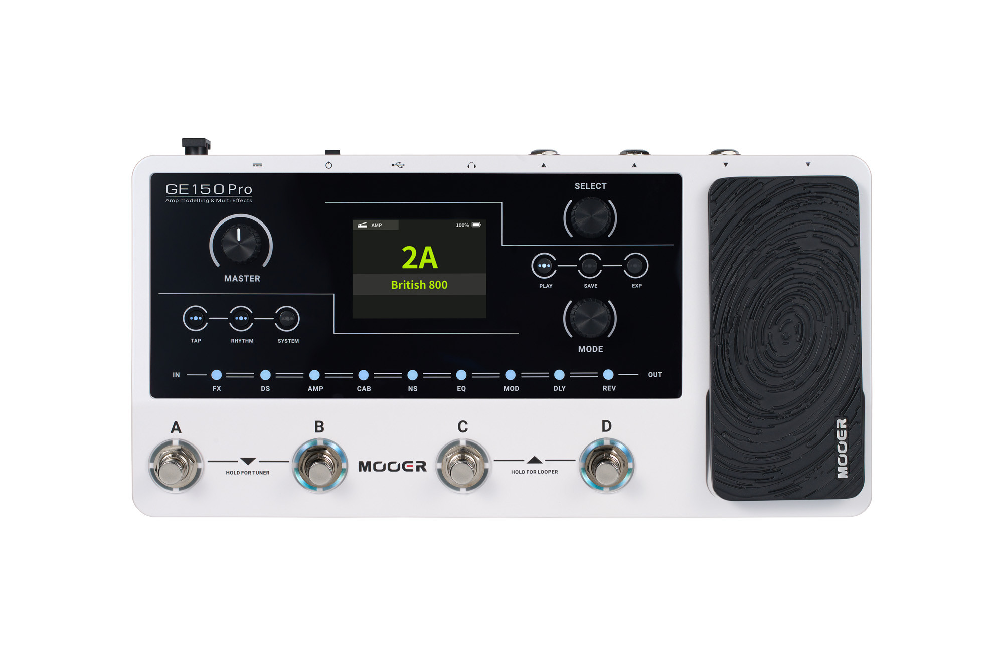 GE150 PRO multi-effects pedalboard, 55 high-quality amp simulations, 26 speaker simulations (IR), white.