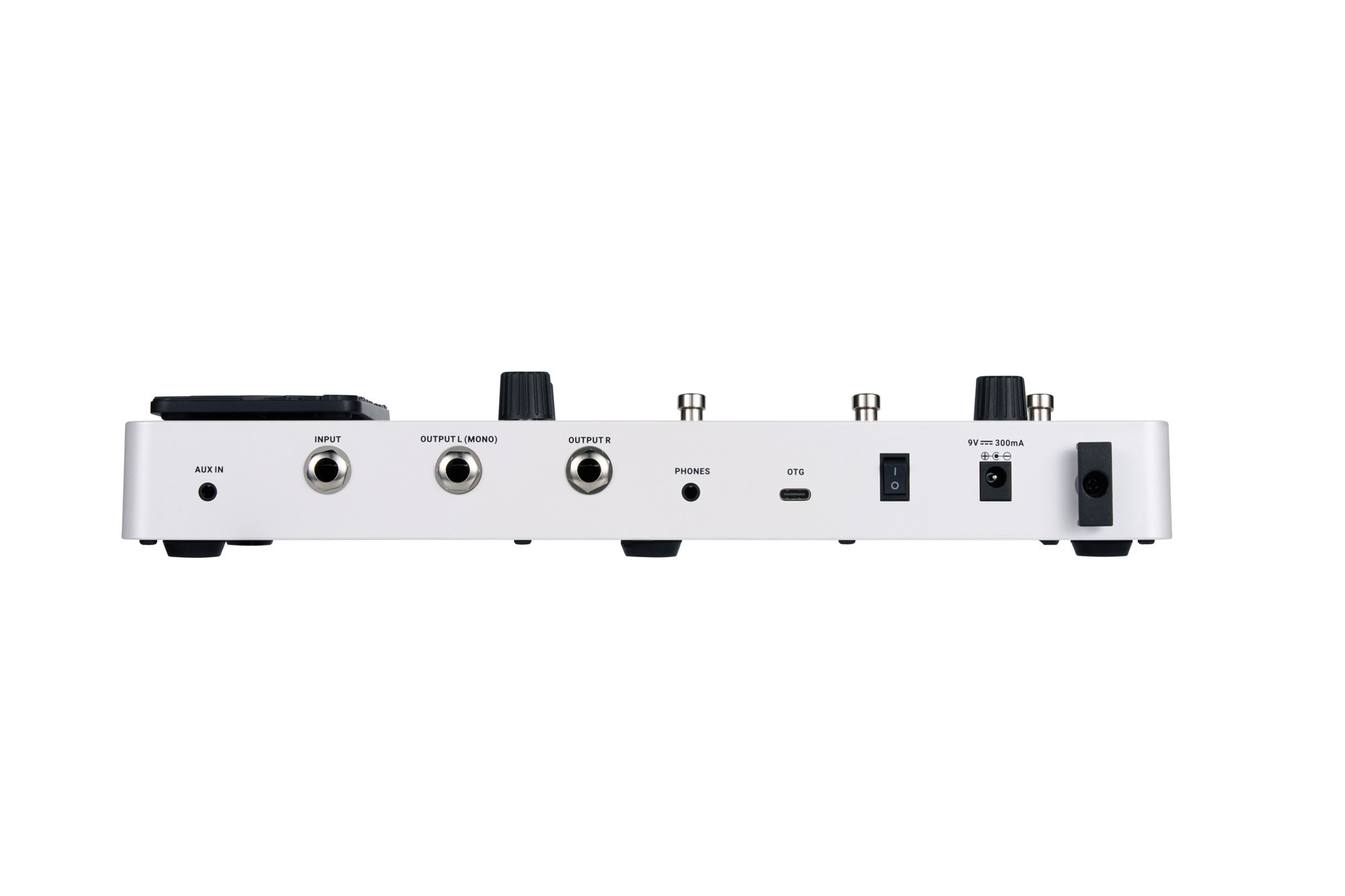 This model also includes a drum machine with 40 patterns, 10 metronome types, an 80-second stereo looper, an integrated expression pedal, and 4 footswitches for convenient control. The stereo jack outputs, auxiliary input, headphone output, and USB-C port for PC editing and direct OTG recording provide versatile connectivity. It comes with a 9V power supply and a USB-C cable.