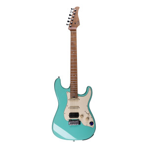 Its American alder body and satin roasted flame maple neck with a C profile offer a comfortable feel. The maple fingerboard with a 12" radius and 42 mm nut contribute to smooth playing, while the double-action truss rod allows precise adjustment. The package is completed by a Wilkinson VS 50 II vibrato, locking tuners, chrome hardware, and 09-42 strings.