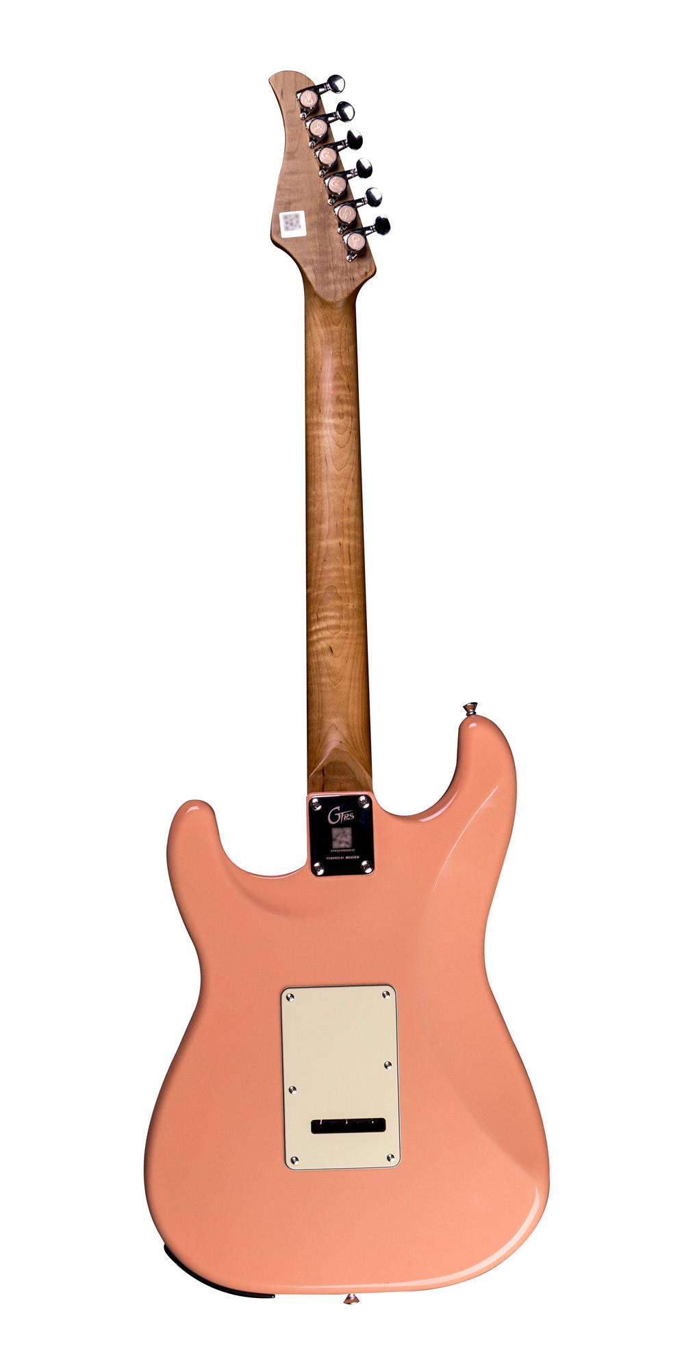 The GTRS P801 combines careful design with an integrated pickup and processor system to deliver a modern, versatile playing experience. Its American alder body, satin roasted flamed maple neck with a C profile, and maple fingerboard with a 12" radius ensure comfortable playability. Its flamingo pink finish gives it a bold look, while its chrome hardware and Wilkinson VS 50 II tremolo complete a package designed for regular use.