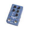 This pedal offers 12 different pitches and 11 harmony modes for working on your harmonies with precision. It features two dedicated potentiometers for separate left and right harmony customization, as well as two potentiometers for independently adjusting the left and right harmony volumes. It supports major and minor scales and includes a dual footswitch for convenient control. Its metal housing ensures a robust build, while the buffer bypass helps preserve the signal. A 9V power supply is included. Consumption: 300 mA. Dimensions: 115 x 75 x 33 mm. Weight: 334 g.