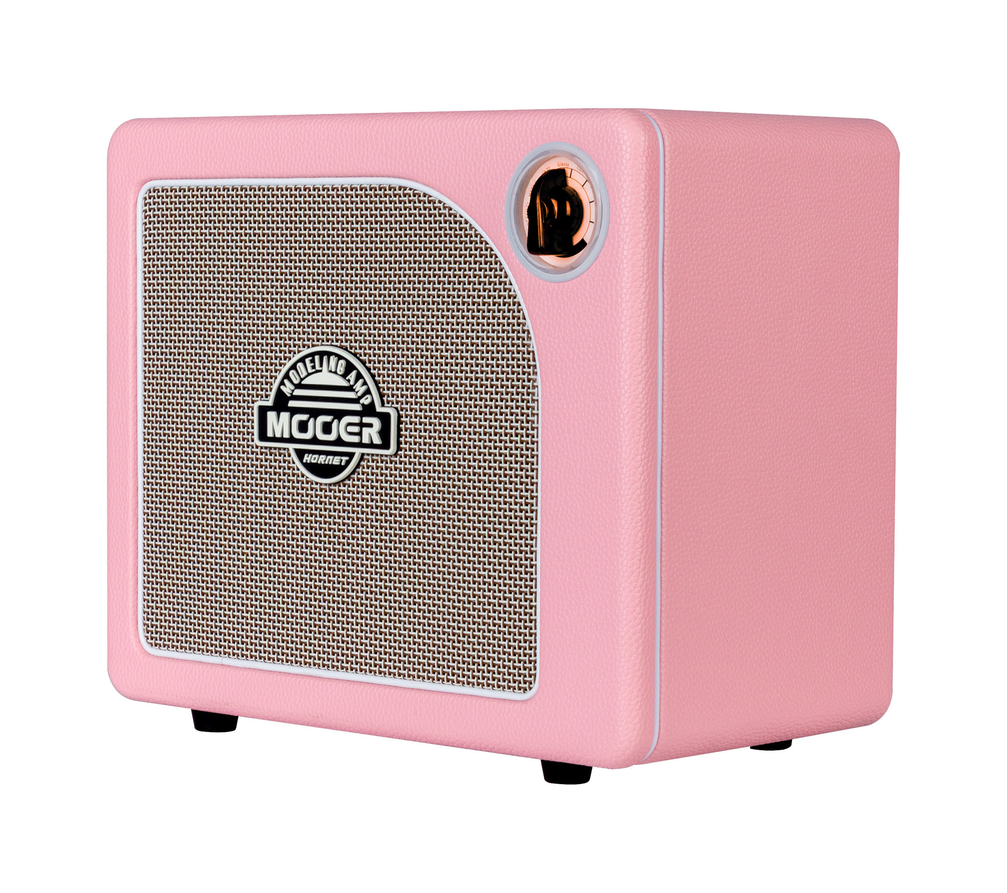 The sound is inspired by major references, with four clean channels based on the Fender Deluxe 65, the Vox AC30, the Two Rock Coral, and the Mesa Boogie Mark V, including clean and distortion sounds. Its pink design also gives it a distinctive visual identity.