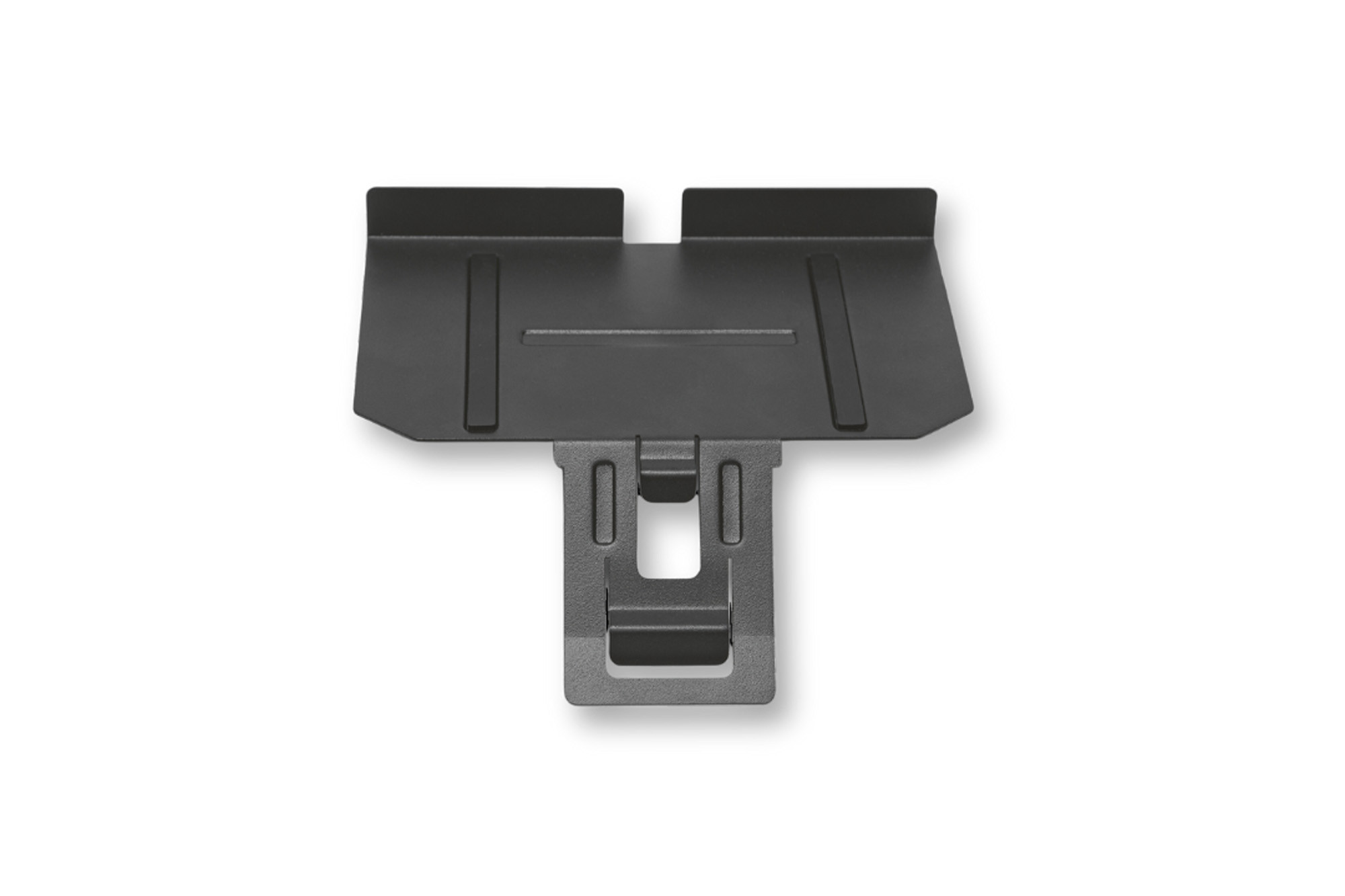 This angled extension is designed to provide practical, adaptable support for a variety of items. Made of steel, it can be attached to each of the 3 sides of the Oneboard and adjusted to fit different item sizes. Once installed, its usable surface ranges from 63 mm to 120 mm from the table edge, with an edge-free surface width of 150 mm.