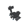 Its steel, aluminum, and fabric construction gives it a sturdy structure, while its 2 rotation axes and 360° adjustable clamp offer great flexibility of use. Its compatibility with 1/4'' and 3/8'' threads as well as rods and tubes up to 25 mm enhances its versatility.