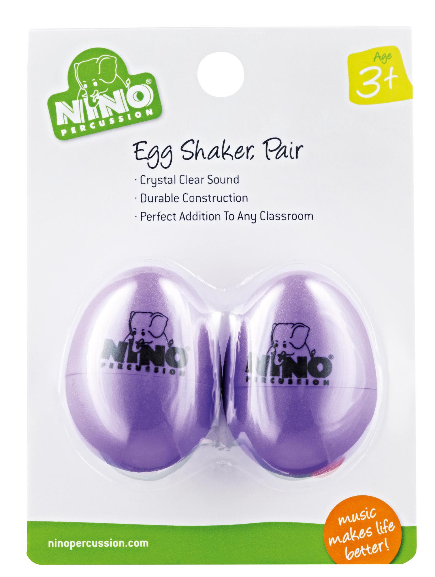 This pair of plastic shaker eggs, aubergine in color, is designed to accompany musicians in their rhythmic practice and percussion accompaniment.