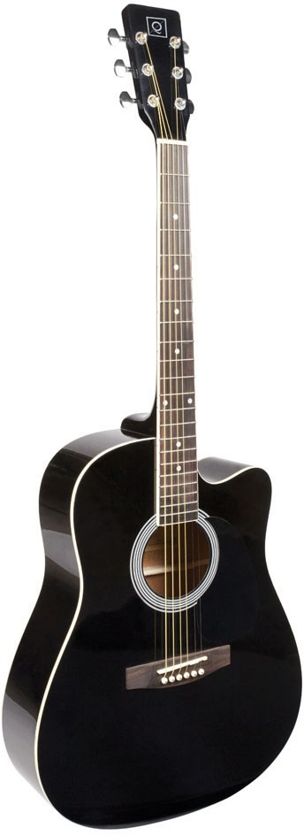 Oqan Qga-21c Bk is a dreadnought acoustic guitar with a cutaway, designed to deliver good sound projection and a comfortable feel. Its spruce top contributes to a clear and balanced tone, while the linden back and sides bring consistency to the overall sound. The catalpa neck makes playing easier, and the compound rosewood fingerboard and bridge complete the instrument with materials suited to regular use. The chrome Die Cast tuners ensure precise tuning, and its glossy black finish gives it an elegant, modern look.