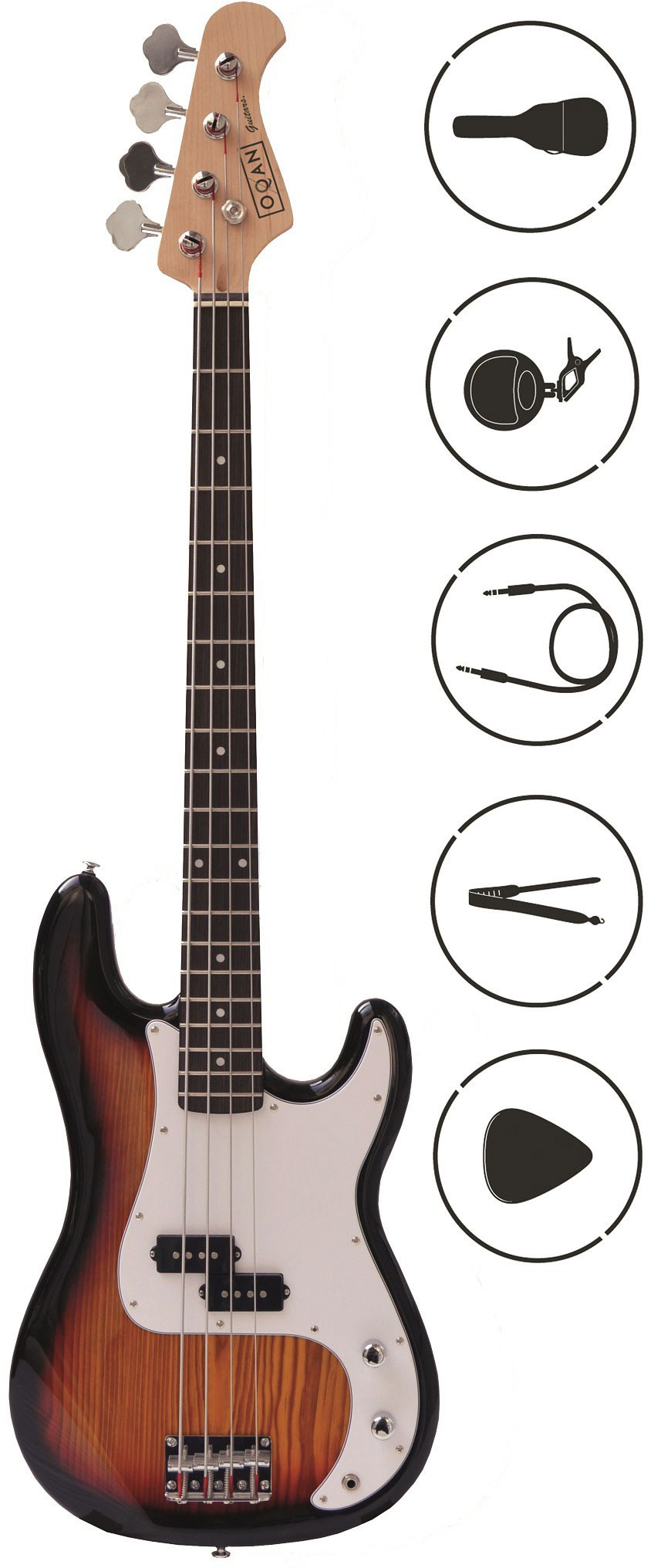 This pack is aimed at bass players looking for a Jazz Bass-style electric bass with the accessories needed to play and transport the instrument.
