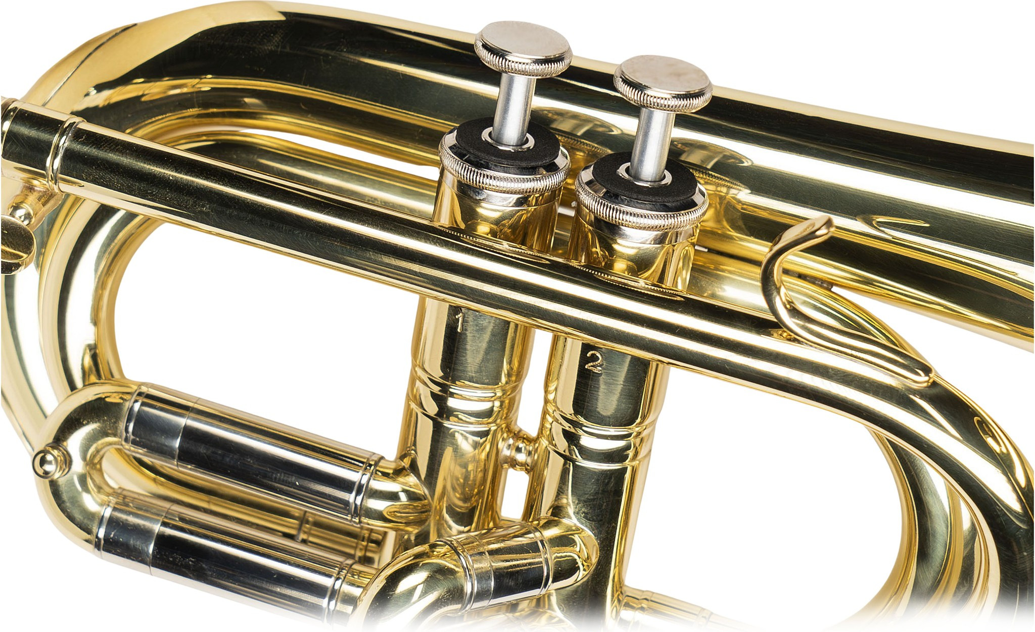 The Oqan OCT200 is a cornet that combines simplicity, versatility, and careful craftsmanship. Equipped with 2 valves, it expands the instrument’s natural range and allows for greater chromatic precision. Its transparent lacquer finish highlights the shine of the metal and ensures good durability. In addition, it comes with a mouthpiece, gloves, and a lightweight, durable foam case, guaranteeing comfort and protection during transport.