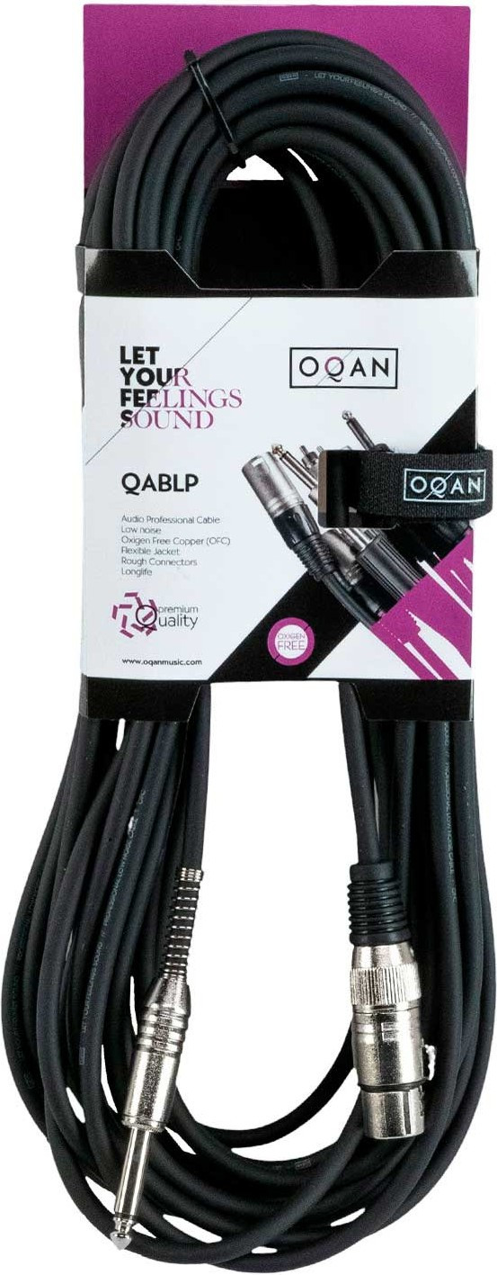 OQAN connection cable with a female XLR connector and a 6.35 mm mono jack, 5 meters long. Its black finish makes it a simple and practical solution for connecting compatible audio equipment.