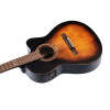 This thin-bodied cutaway model has been designed to offer a comfortable playing feel and excellent playability. It stands out for its solid spruce top, mahogany back and sides, as well as its mahogany Slim Neck. Its aged satin tobacco sunburst finish, combined with an aged effect on the top and back, gives it a distinctive style. It is equipped with an Ortega MagusPro preamp, a blackwood fingerboard and bridge, a 12-hole bridge, an Eclipse rosette, and a double-action truss rod. The aged-style tuners, Savarez 500CJ strings, and 48 mm nut complete the package. A deluxe padded gig bag and a strap are included.