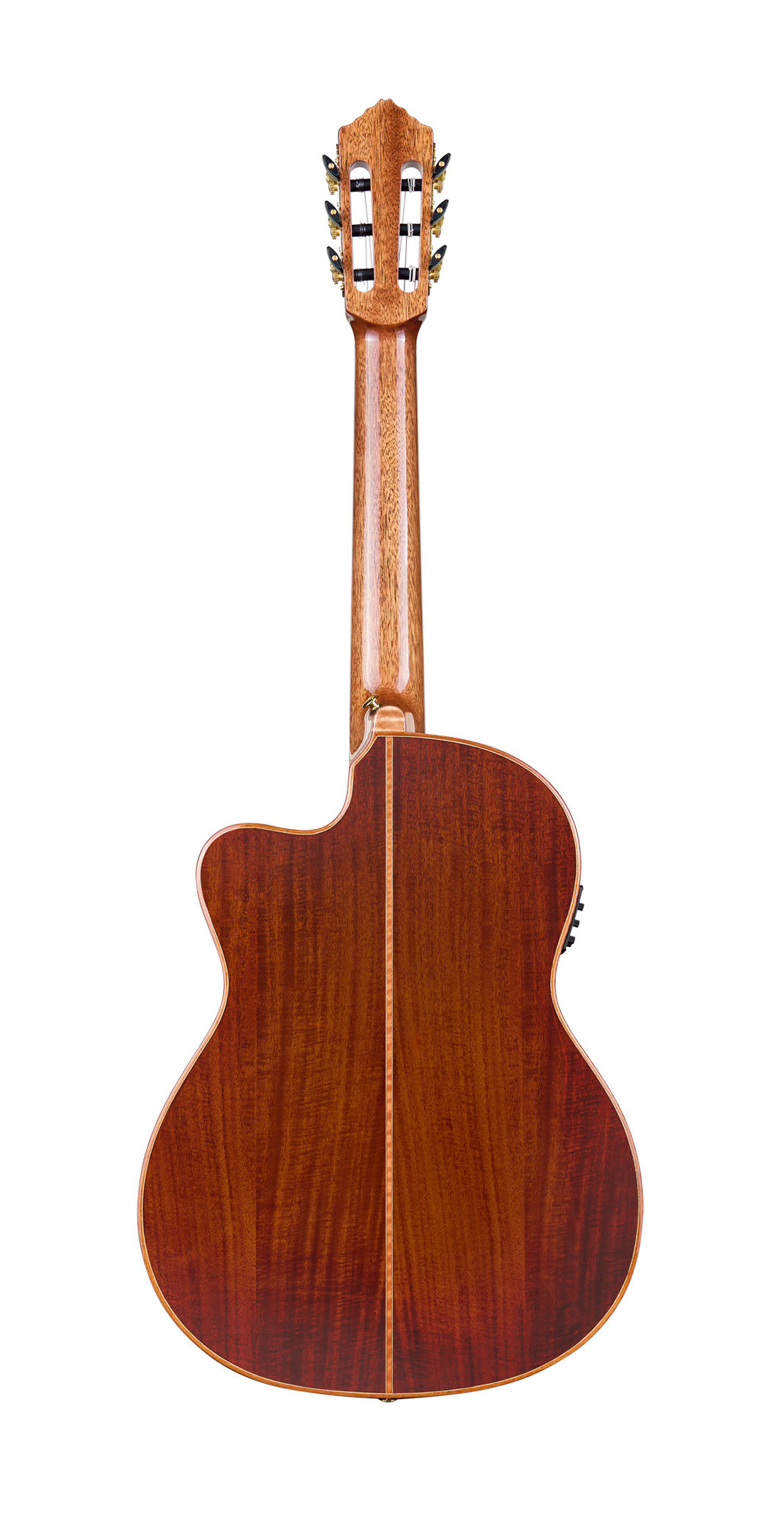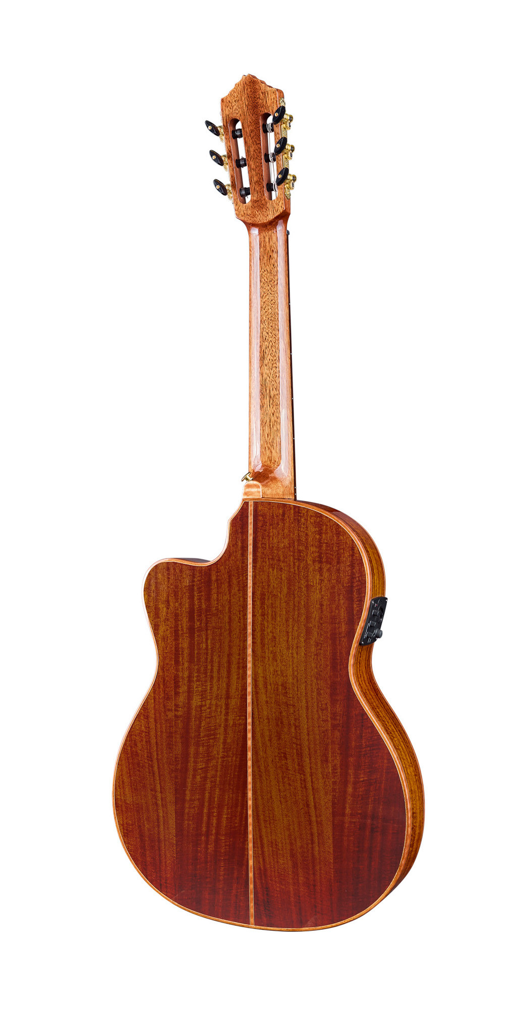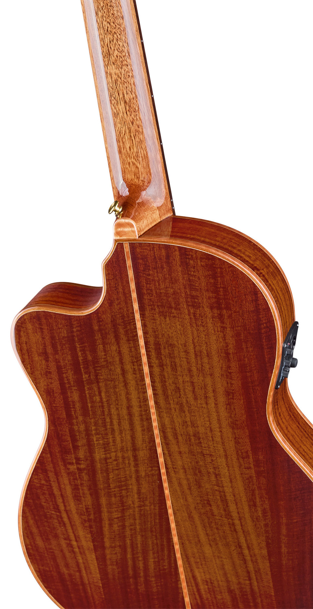 • Flamed acacia back and sides with glossy finish