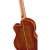 This Thinline cutaway model combines a solid spruce top with flamed acacia veneer, as well as flamed acacia back and sides for a glossy, refined finish. It is equipped with a rechargeable Ortega MagusPro/G system, an okoume neck with a 50 mm nut, a rosewood fingerboard and bridge, and a 12-hole bridge. Playing comfort is enhanced by an armrest, a side sound port, and a double-action truss rod. The A-grade satin brass/black tuners, Ortega NYP44H strings, and deluxe padded gig bag complete the package.