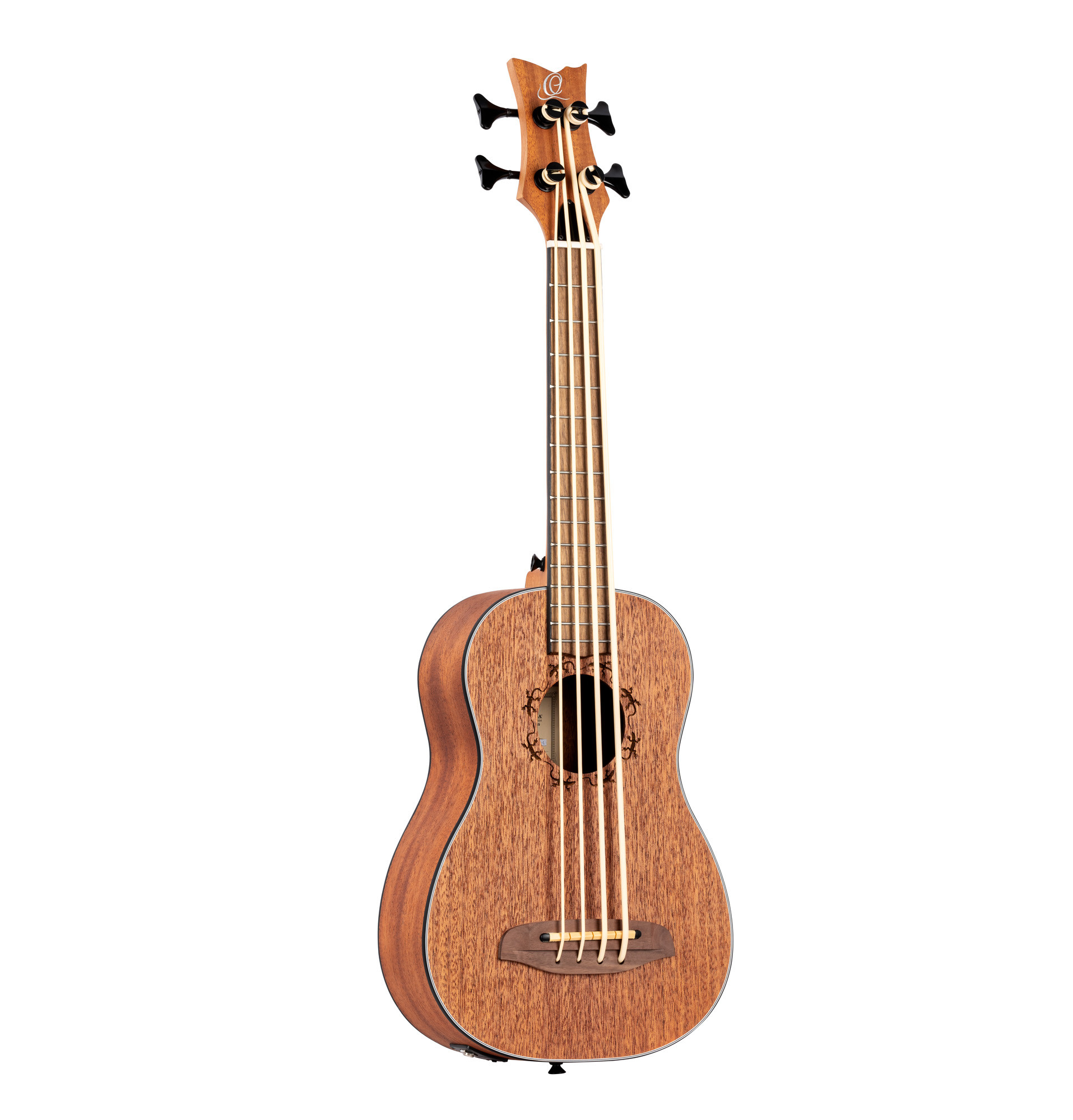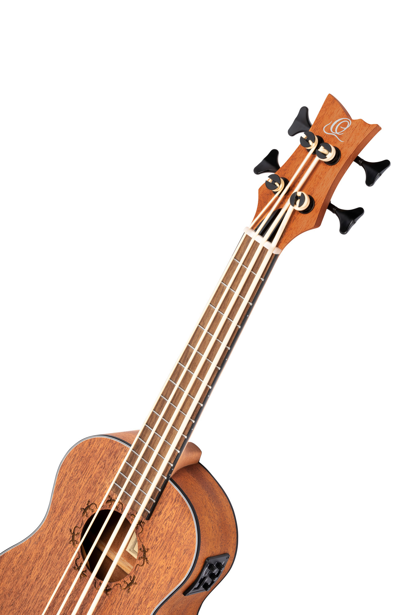 This left-handed model is equipped with an Ortega MagusUkebass EQ system and designed with a mahogany top, mahogany back and sides, as well as a mahogany neck with a 45 mm nut width. It features 15 frets, a rosewood fingerboard and a rosewood bridge. The finish includes black ABS binding and white purfling. A double-action truss rod is also integrated. The product is supplied with a deluxe gig bag.