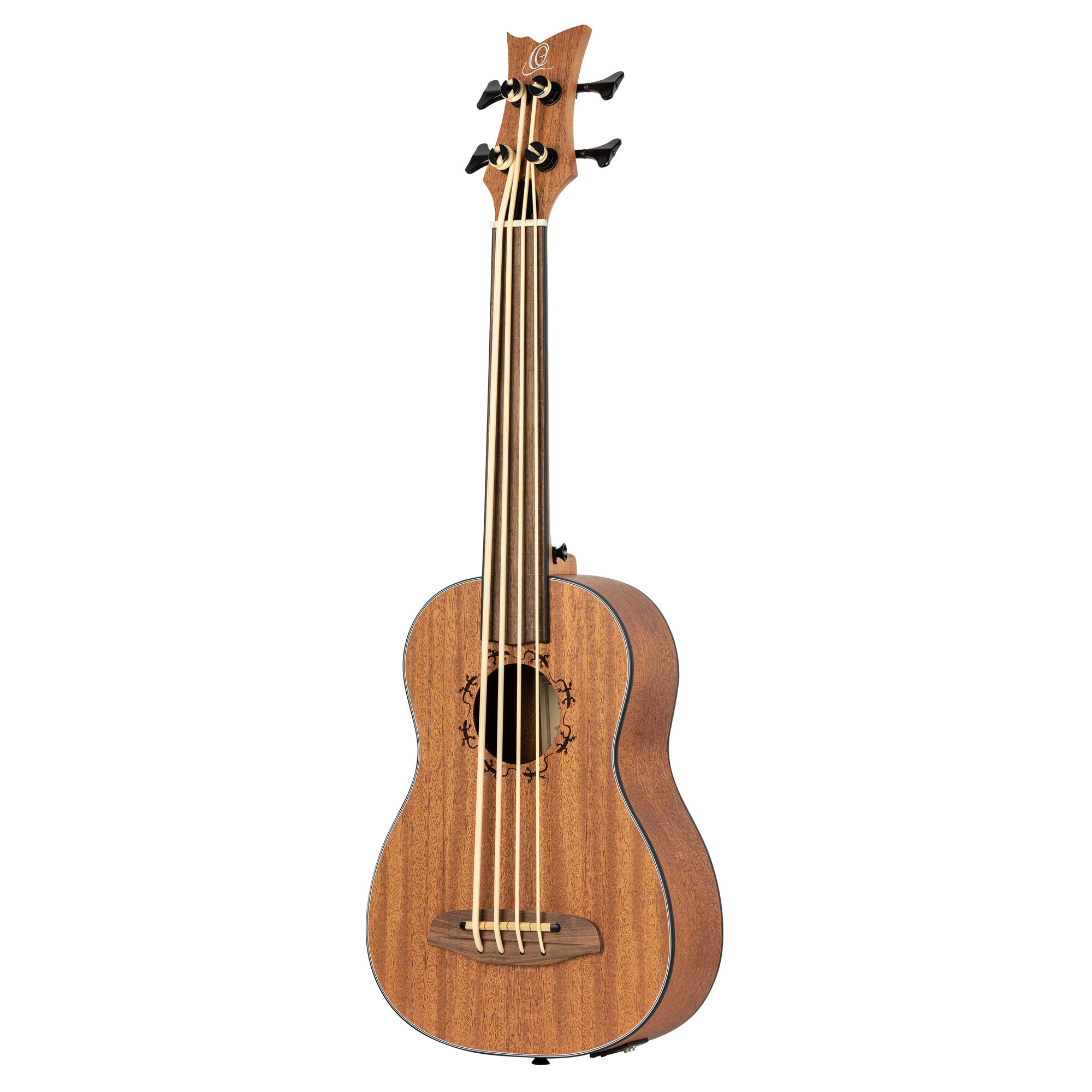 It stands out for its Ortega MagusUkebass EQ, its lined fretless design, selected materials, and included deluxe gig bag, making it a complete solution in its range.