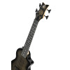 This Ukebass model stands out for its careful construction and features designed to provide a comfortable grip and a pleasant playing experience. It is equipped with a cutaway, a rechargeable Ortega MagusExpress EQ, a flamed maple top, an okoume body, and a maple neck.