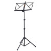 Folding aluminum music stand, made up of 3 sections, with adjustable height from 57 to 127 cm. Its 43.5 x 22 cm desk and included carrying bag make it a practical solution that is easy to move. Black finish.
