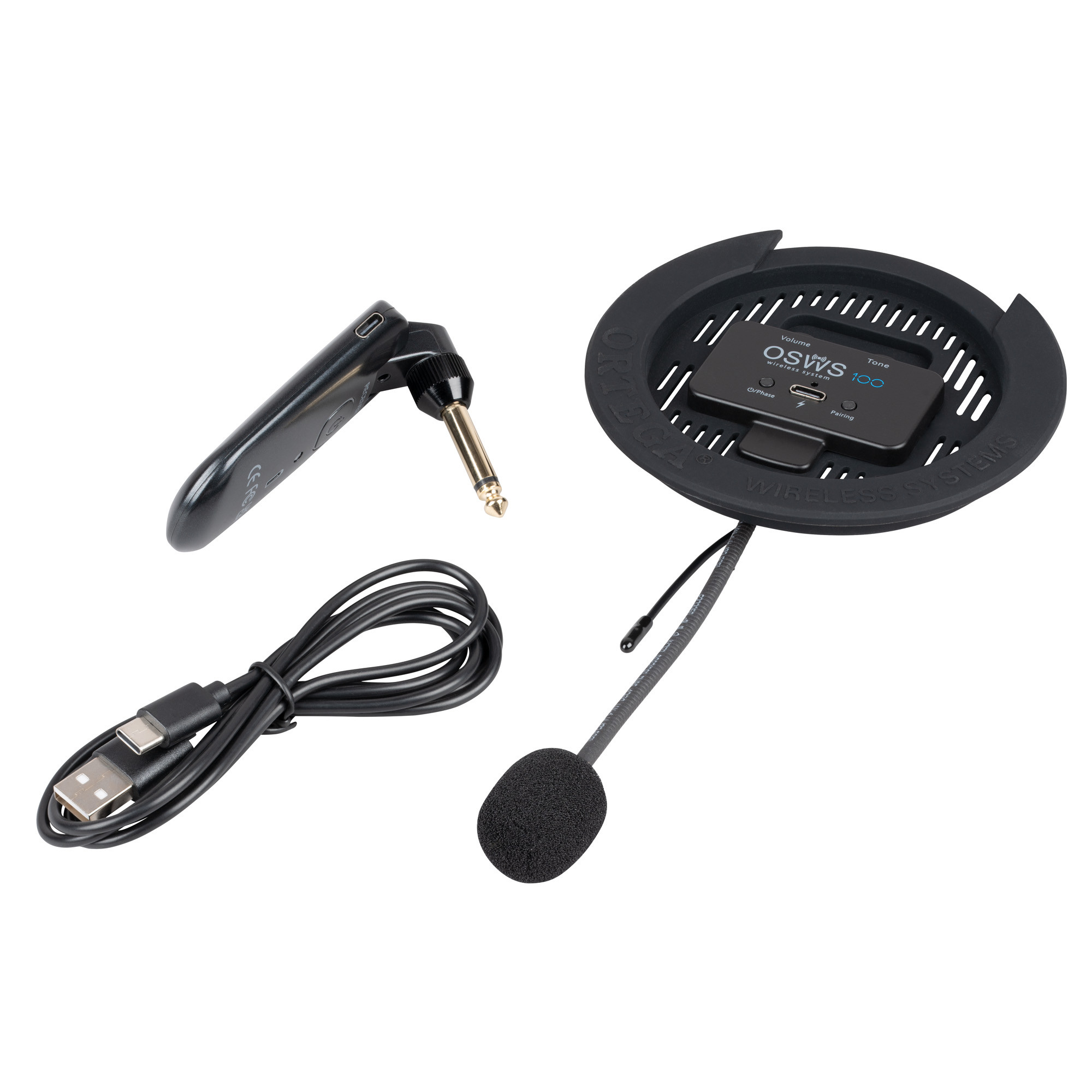 The OSWS100 is a wireless microphone system designed for acoustic guitars with a 100 mm soundhole. Its gooseneck microphone allows precise positioning, while its direct installation in the soundhole requires no drilling or tools. Compact and discreet, it comes with a wireless receiver and a USB-C cable, in a understated black finish that preserves the instrument’s aesthetics.