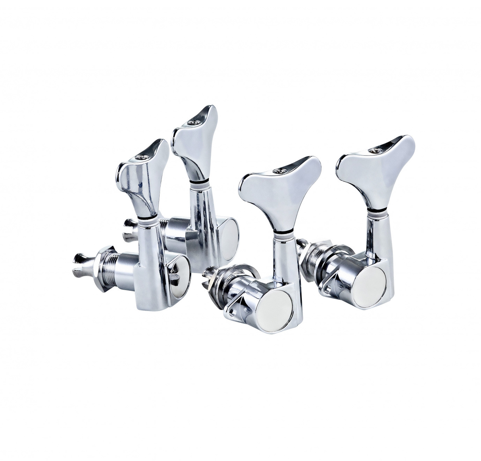 Set of separate 2+2 oil-bath tuners for bass, with a 18:1 ratio and a chrome finish.
