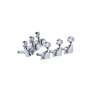 This set of 6 locking inline tuners is designed for electric guitar. It offers an 18:1 ratio and a chrome-plated finish.