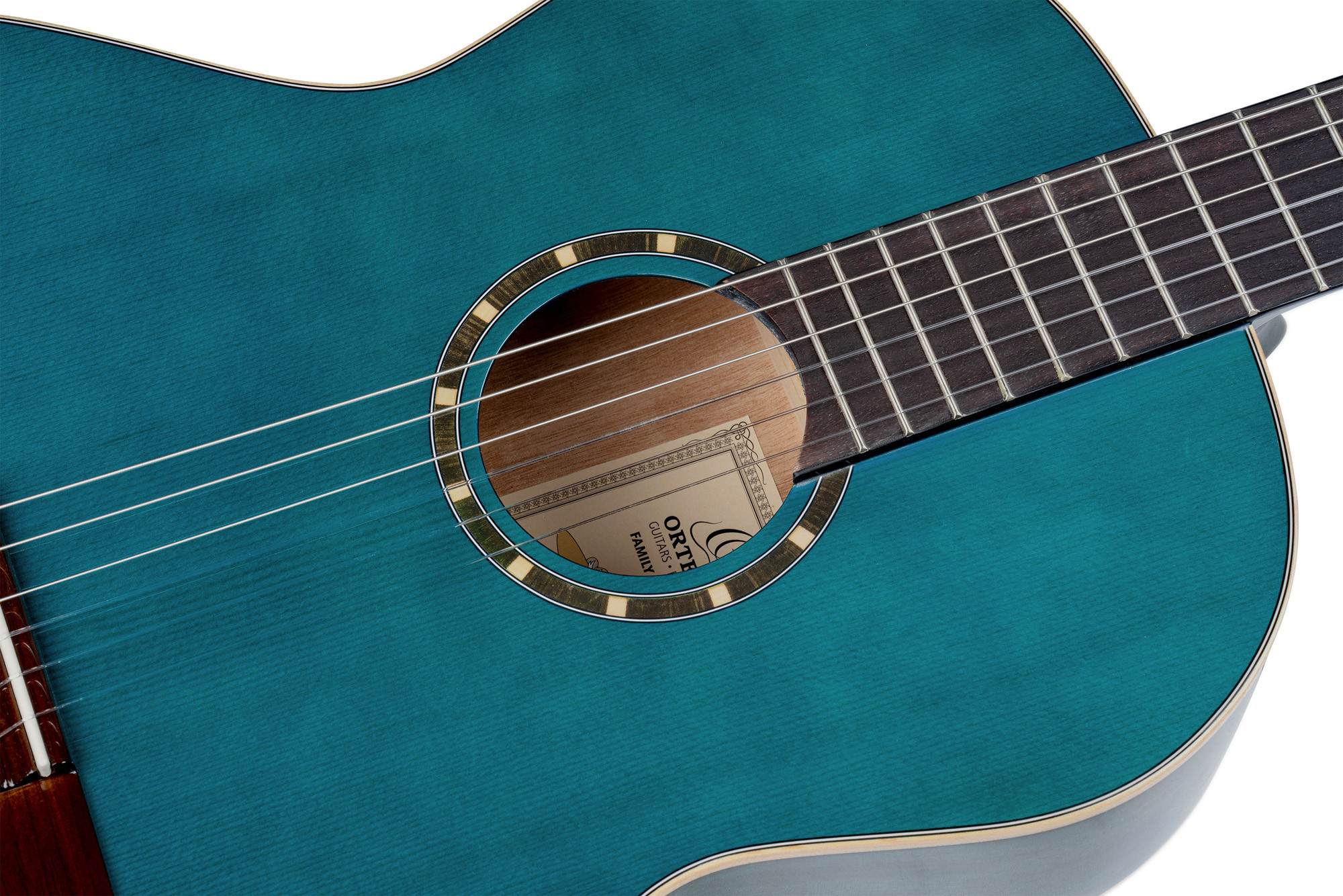 This Slim Neck model stands out with a spruce top, mahogany back and sides, as well as a mahogany neck with a 48 mm nut. It comes with a gig bag and features a glossy ocean blue finish. The version described also includes a walnut fingerboard and bridge, a 12-hole bridge, a double-action truss rod, and a padded deluxe gig bag.