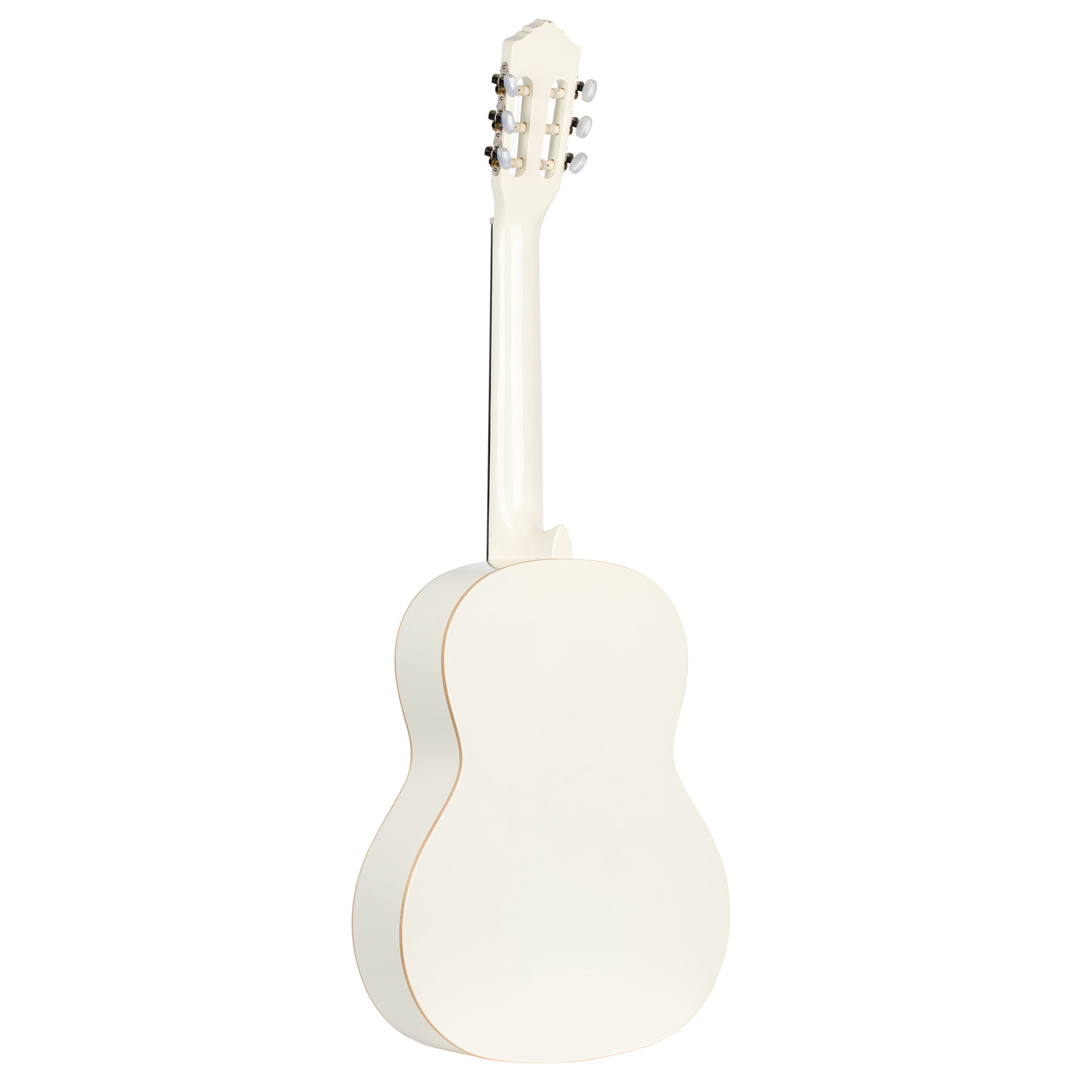 Designed to provide a comfortable grip and balanced sound, this guitar combines a spruce top with mahogany back and sides. Its mahogany neck with a 52 mm nut is suited to precise playing, while its high-gloss white finish gives it a polished, modern look. It comes with a gig bag for more convenient transport.