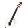 It stands out through its combination of woods, its mahogany neck with 52 mm nut, its high-gloss white finish, and the elements included in the detailed version, such as D'Addario strings and the padded deluxe gig bag.