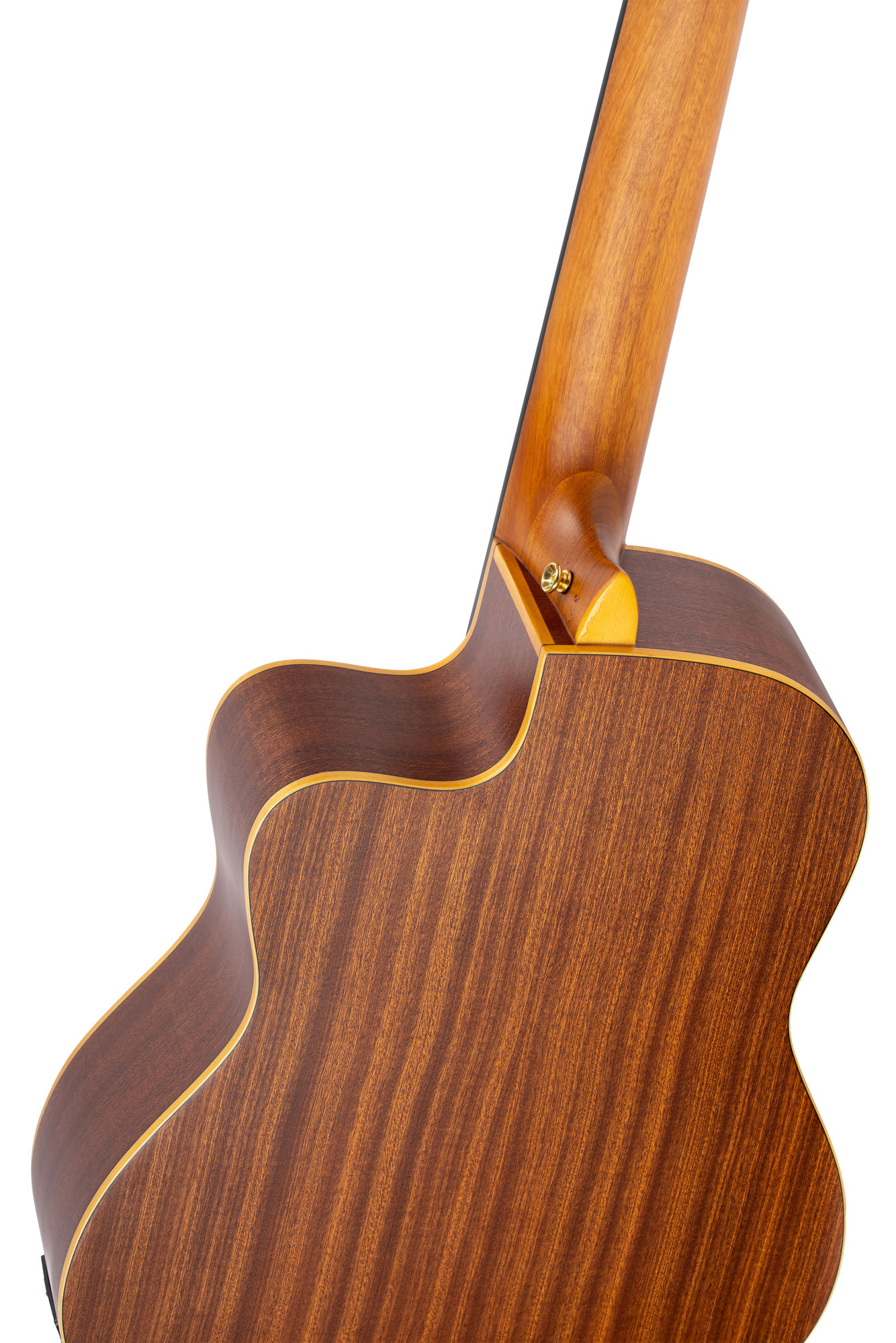 Its solid red cedar top, combined with mahogany back and sides, makes for a set appreciated for its solid construction. The mahogany neck, 52 mm nut, sonokeling fingerboard and bridge, as well as the double-action truss rod, all contribute to a reliable and carefully made design. D'Addario strings and the padded gig bag complete the package.