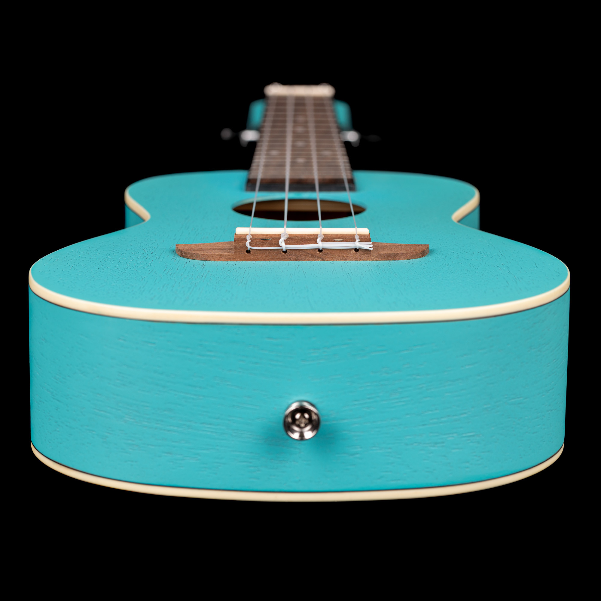 RULAGOON, Concert model, with an okoume top, okoume back and sides, mahogany neck, and satin blue finish.