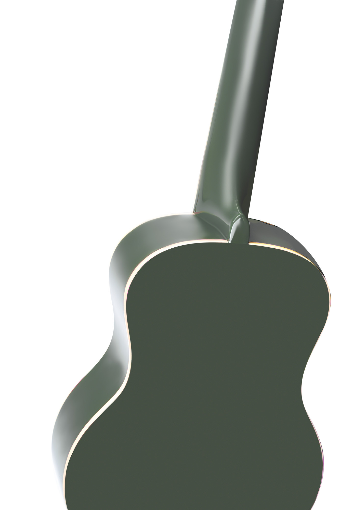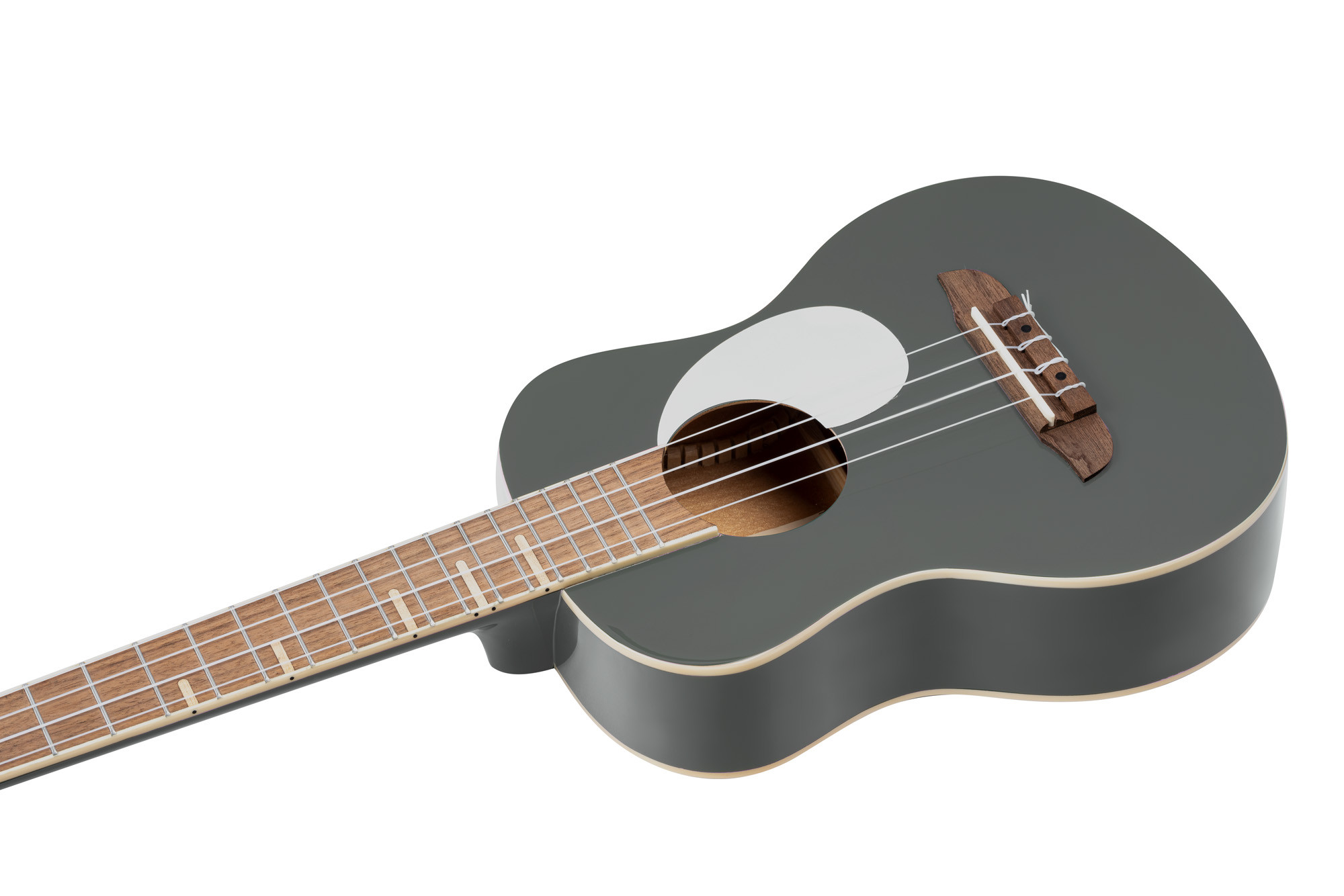 This model features careful construction with an agathis top, agathis back and sides, and an Okoumé neck. It comes with a matching gig bag and features a glossy platinum grey finish for an elegant, modern look.