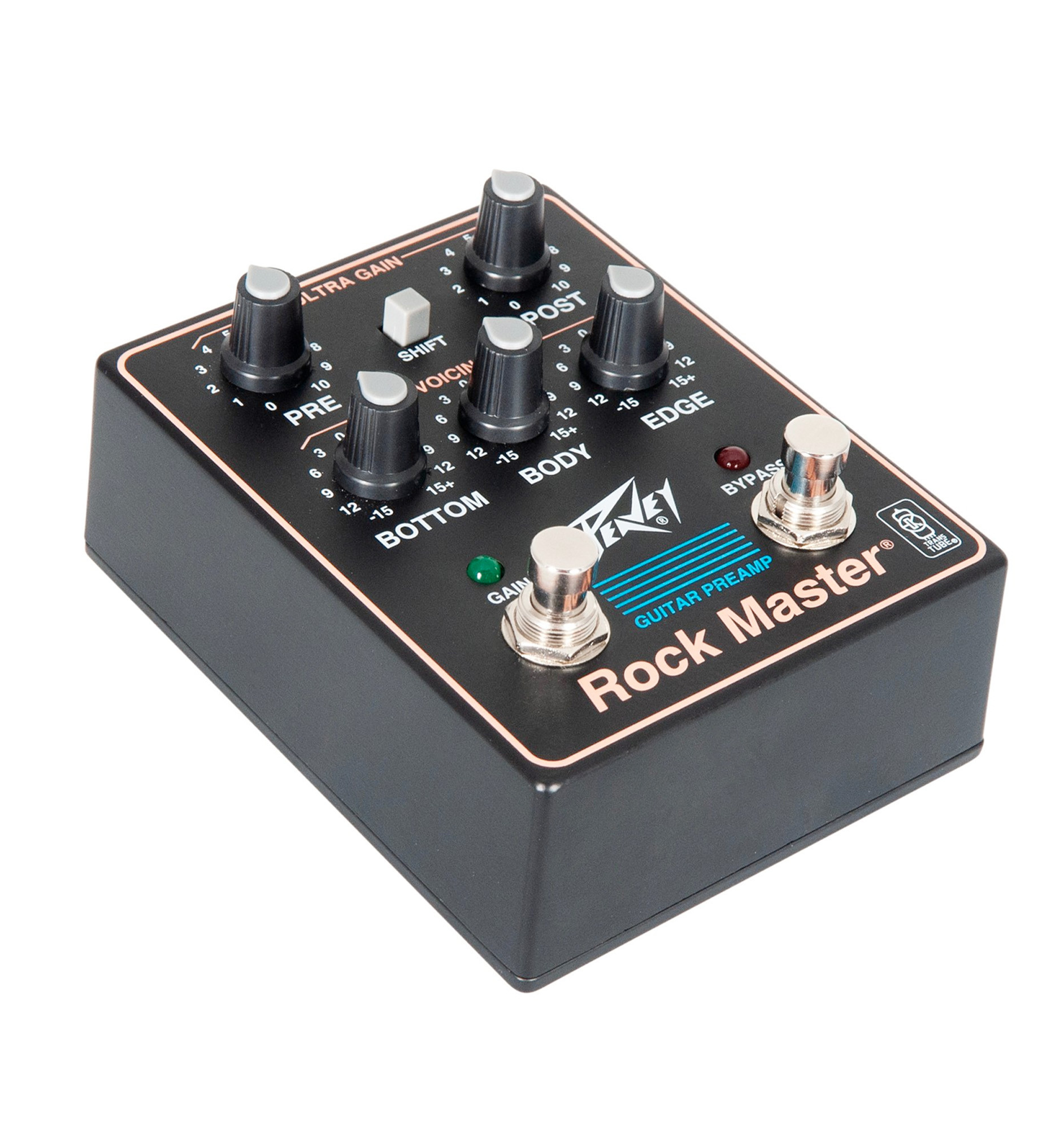 Short description: Guitar preamp pedal based on the "Ultra" channel circuit of the Rock Master 1990, with active EQ, boost, Mid Shift and silent bypass.