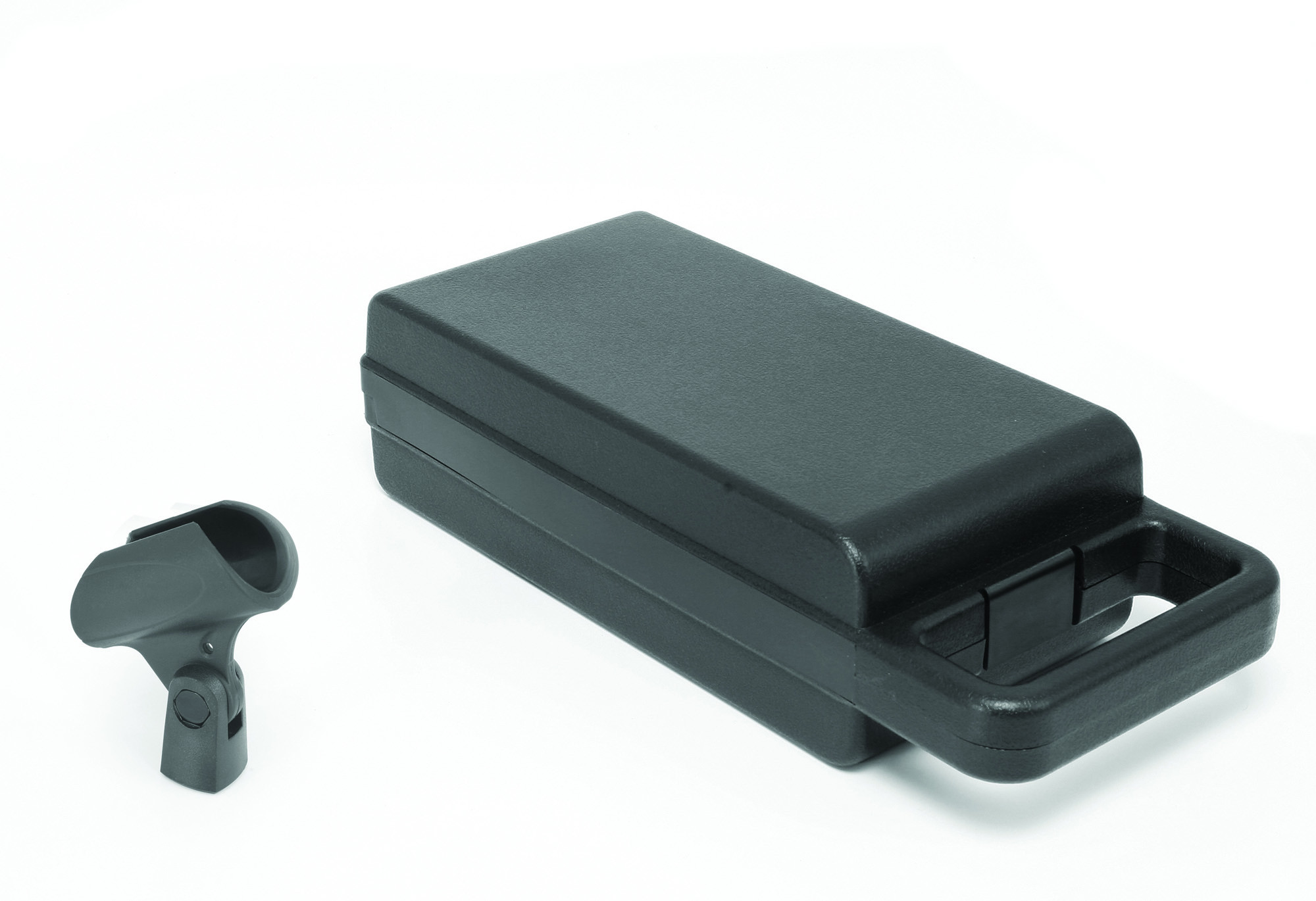 The gold-plated XLR connector improves conductivity. The set comes with a hard case and a microphone clip for convenient transport and setup. Its black finish gives it a understated, professional look.