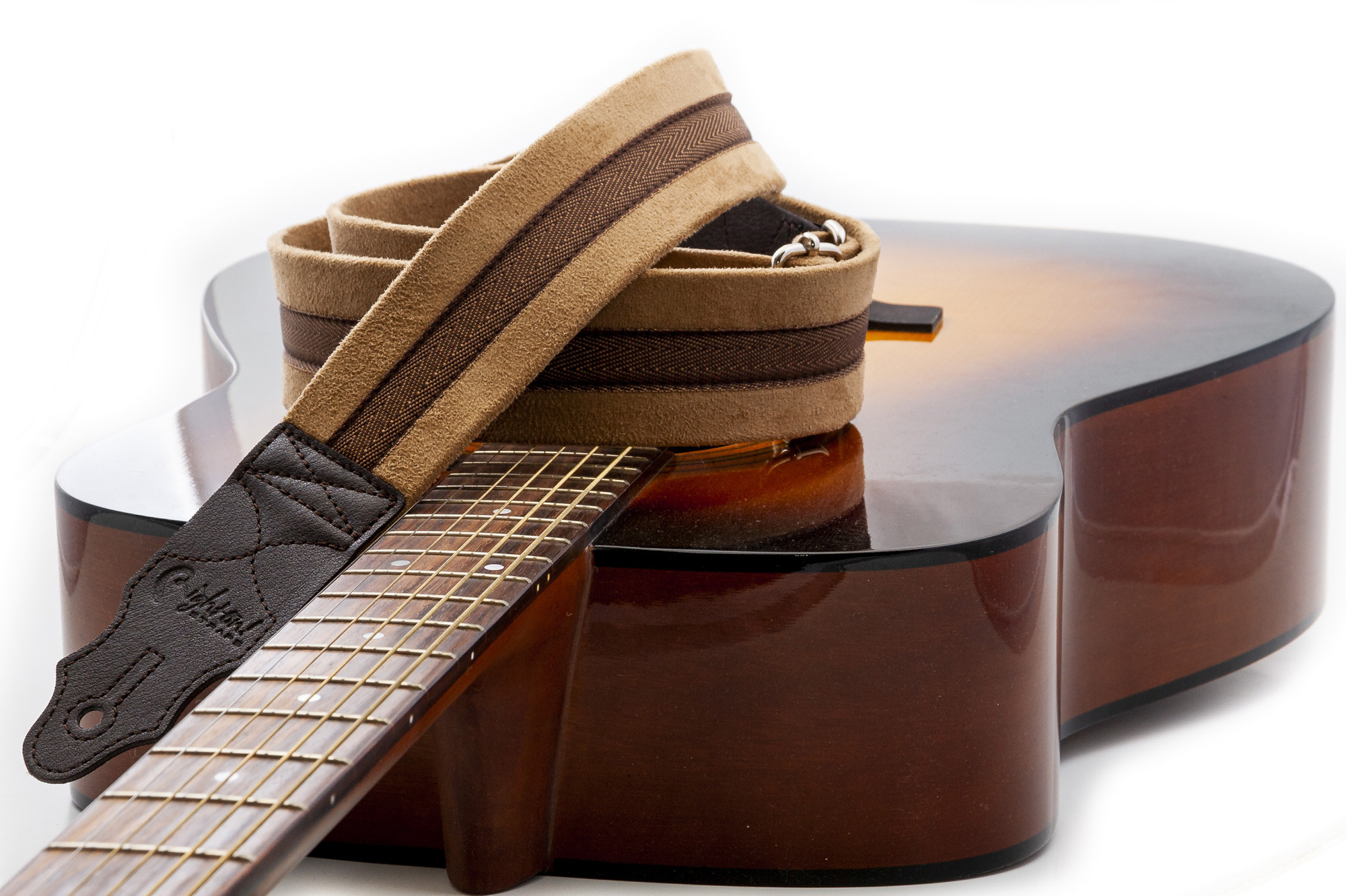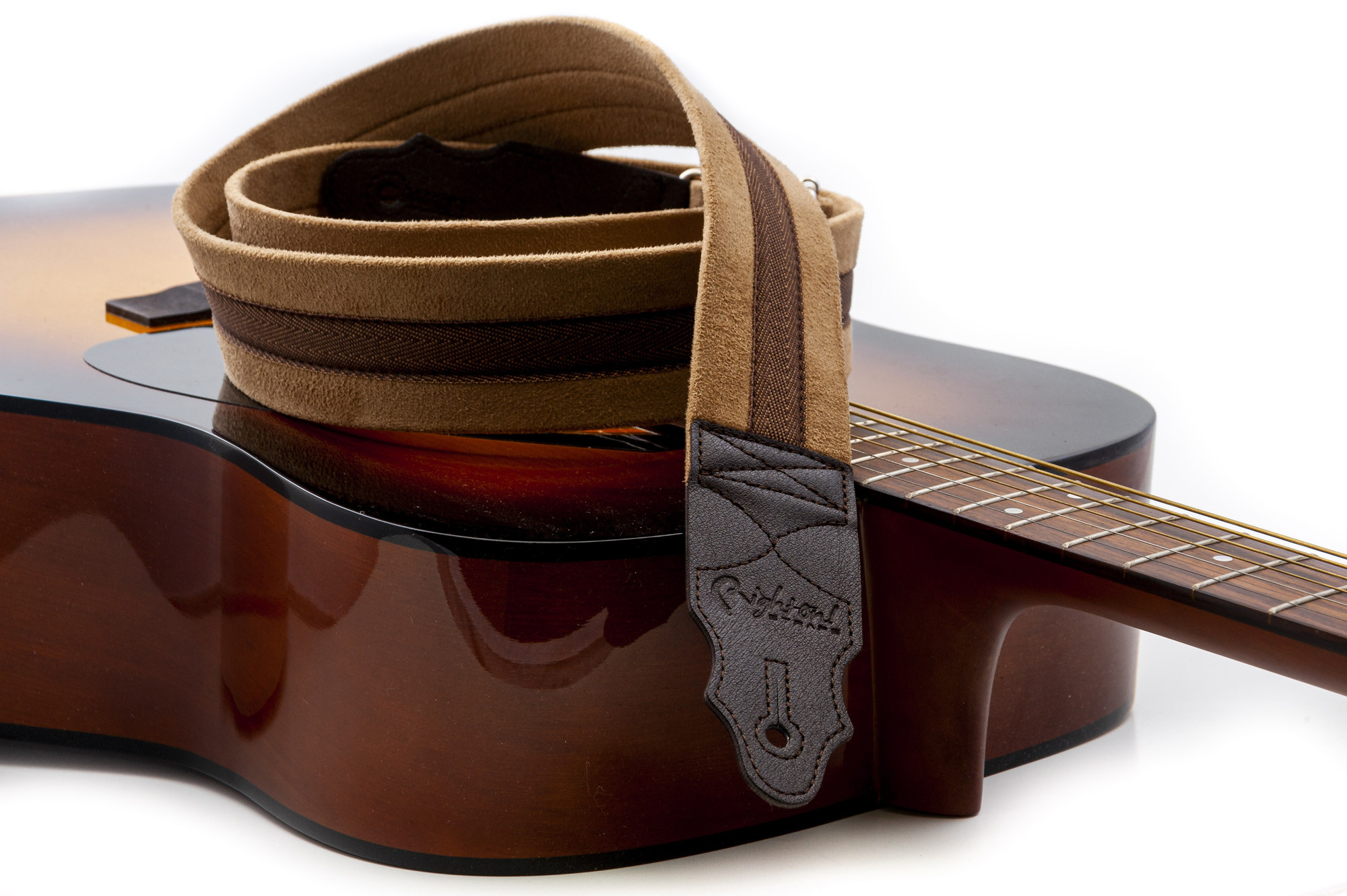 Its appeal lies in its balance of simplicity, adjustable length, 5 cm width, and beige textile finish, with design details such as leather ends and microfiber lining.