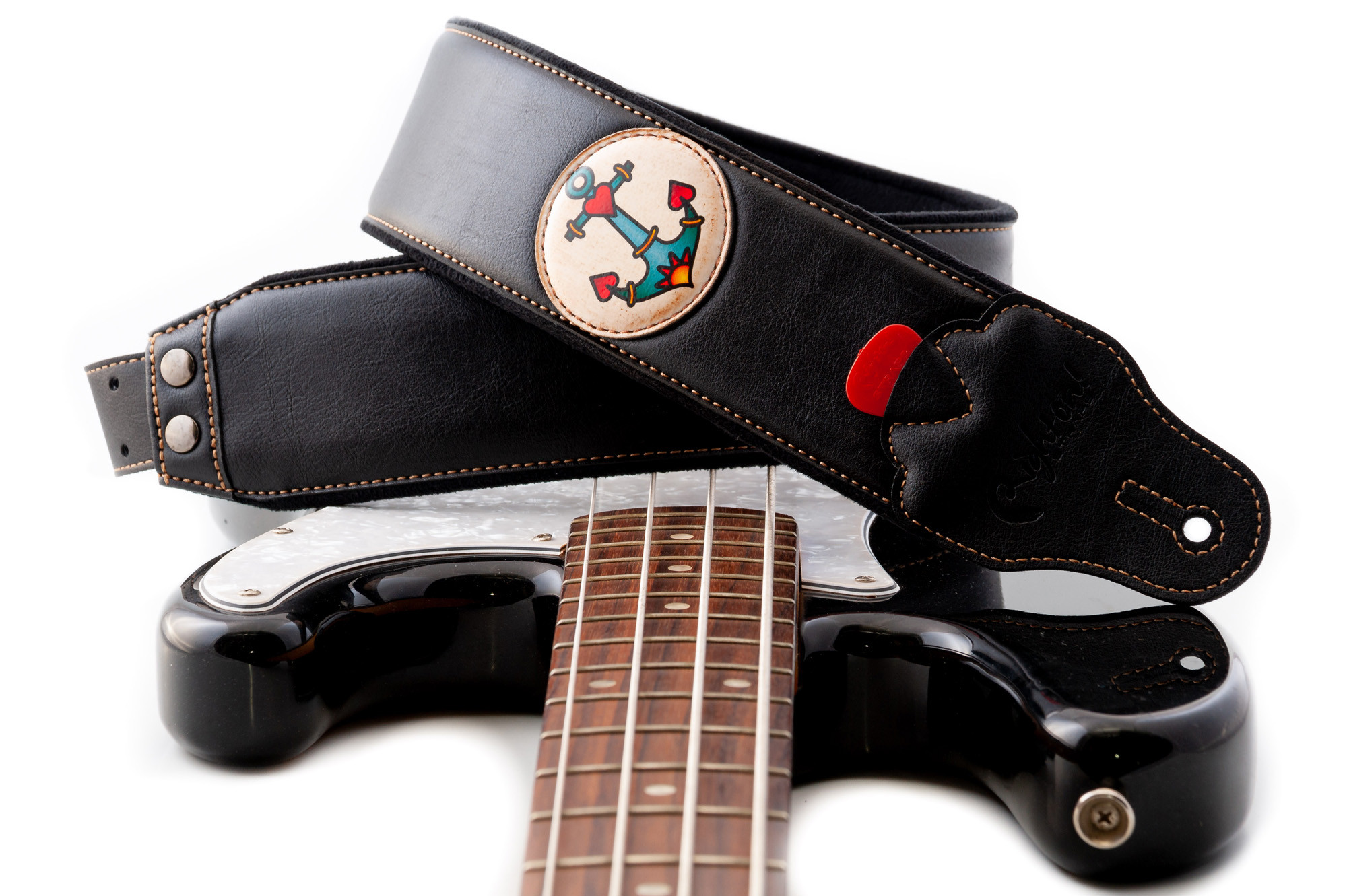 This TATOO ANCHOR strap is designed with a synthetic outer and a width of 7 cm for comfortable wear. Adjustable from 98 to 153 cm, it easily adapts to different playing positions. It also includes a practical pick holder and comes in black for a sleek, versatile style.