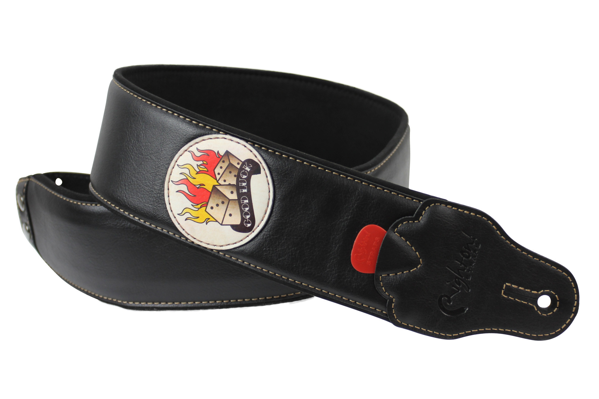TATOO OLD SCHOOL DICE strap (dice), synthetic exterior, microfiber lining, 100% synthetic ends, high-density padding, 7 cm width, 98 to 153 cm length, integrated pick holder.