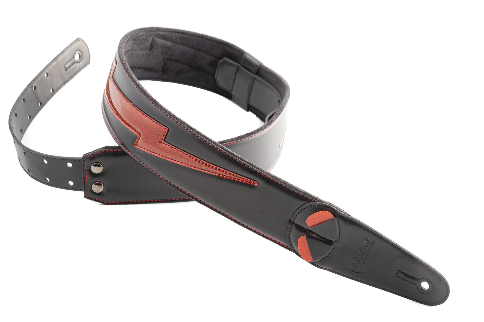 It is aimed at musicians looking for an adjustable, comfortable, and practical strap, with an integrated pick holder to keep a useful accessory within easy reach.