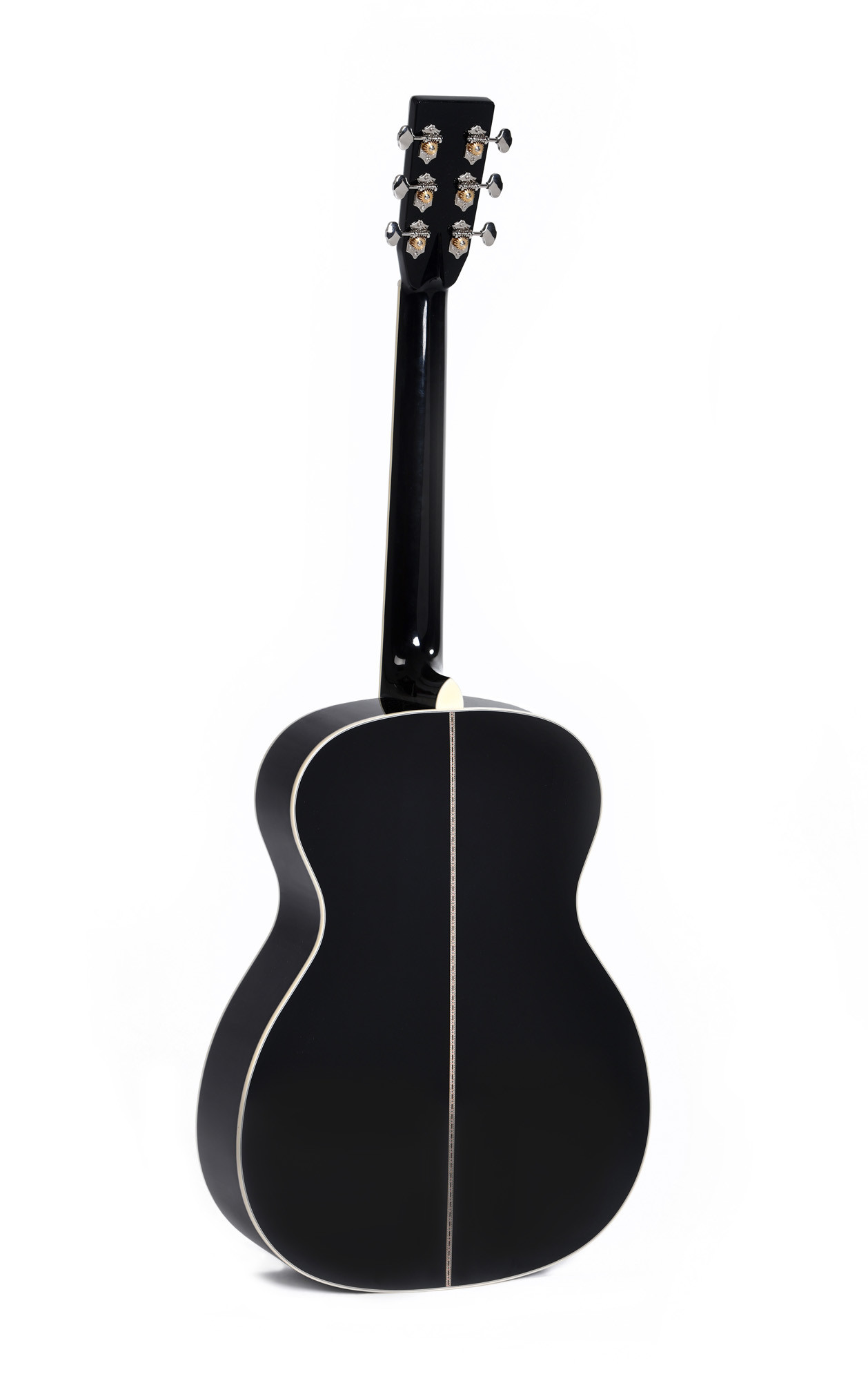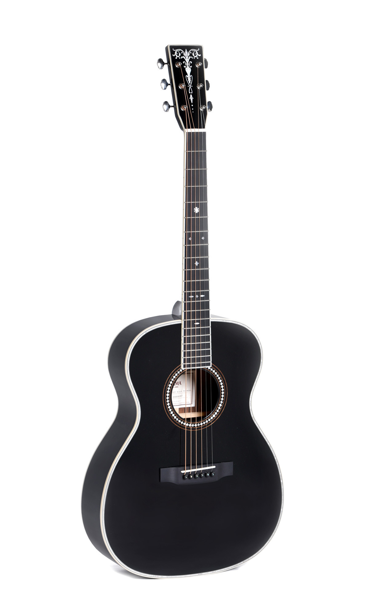 It is aimed at musicians looking for a 000-shaped instrument with a precise configuration and a glossy black finish, delivered with its soft case.