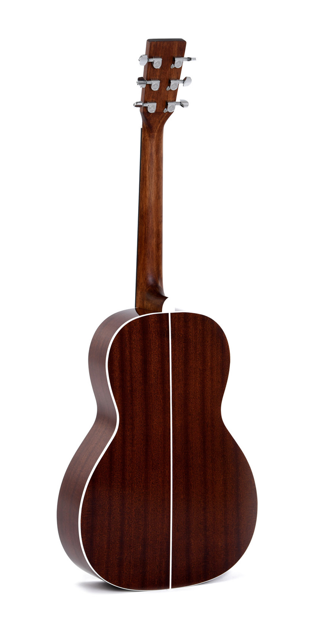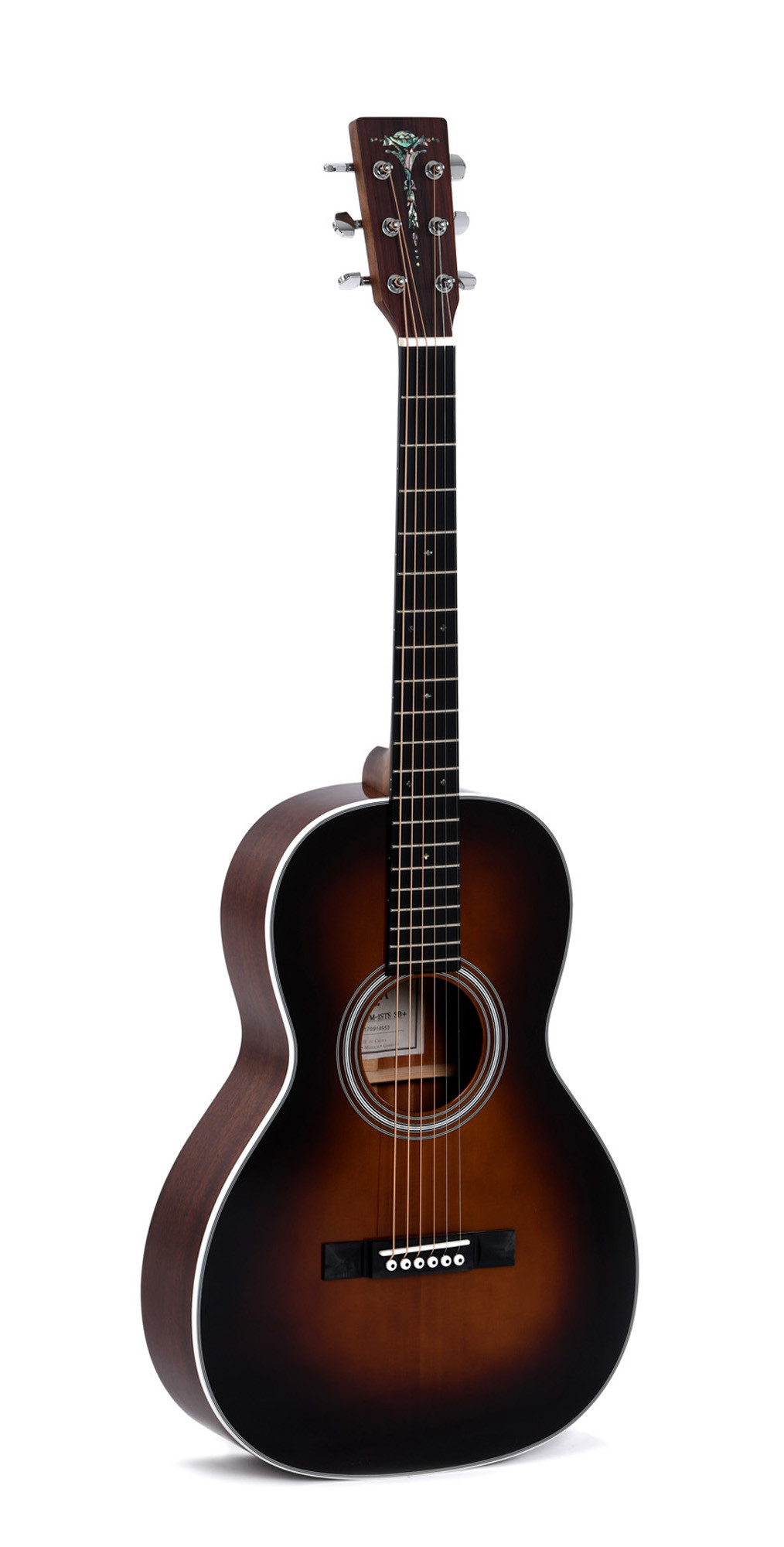 This model features a mahogany neck, a 25.4" (645 mm) scale length, and a 42.9 mm nut width. The headstock is adorned with abalone inlays, and the chrome die-cast tuning machines provide precise, stable tuning. This configuration makes it an instrument built with carefully selected materials for good build quality and a premium presentation.