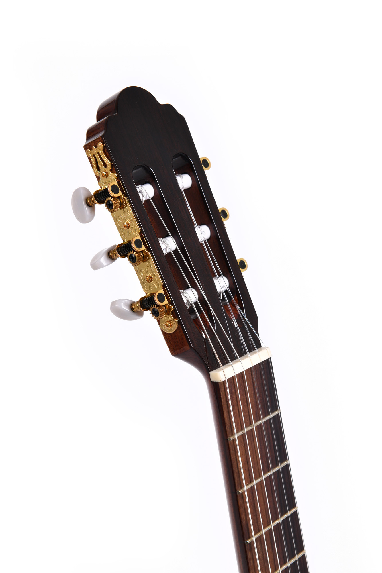This model features careful construction with a solid cedar top, Indian rosewood back and sides, as well as an Indian rosewood fingerboard and bridge. Its mahogany neck, bone nut, 650 mm scale length, and 52 mm nut width complete a classic and harmonious set. The gold-plated luxury tuners provide an elegant finish.