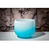 This 10" Sonic Energy crystal singing bowl stands out with its light blue color and frosted effect. Made from quartz, it is associated with the throat chakra and tuned to the note G4 at 392 Hz.