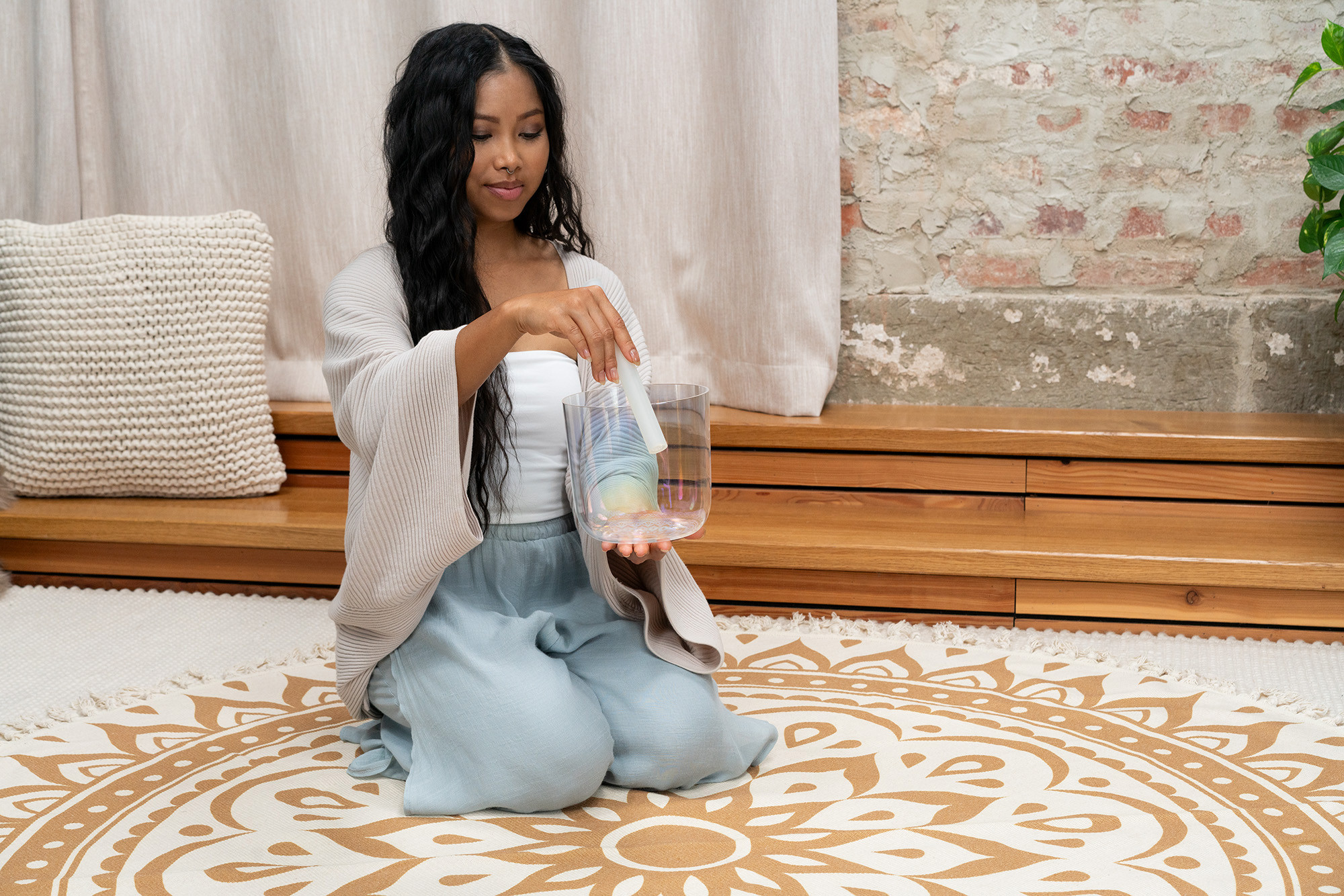 The Meinl Sonic Energy Essence Crystal Tibetan singing bowl, 6 inches, is made from high-purity quartz and resonates at a frequency of 440 Hz. Its sound is clear, rich and deep, with light vibrations that are ideal for relaxation, meditation and sound work. Its transparent design is accompanied by a white silicone ring, a silicone mallet and a carry bag for practical everyday use.