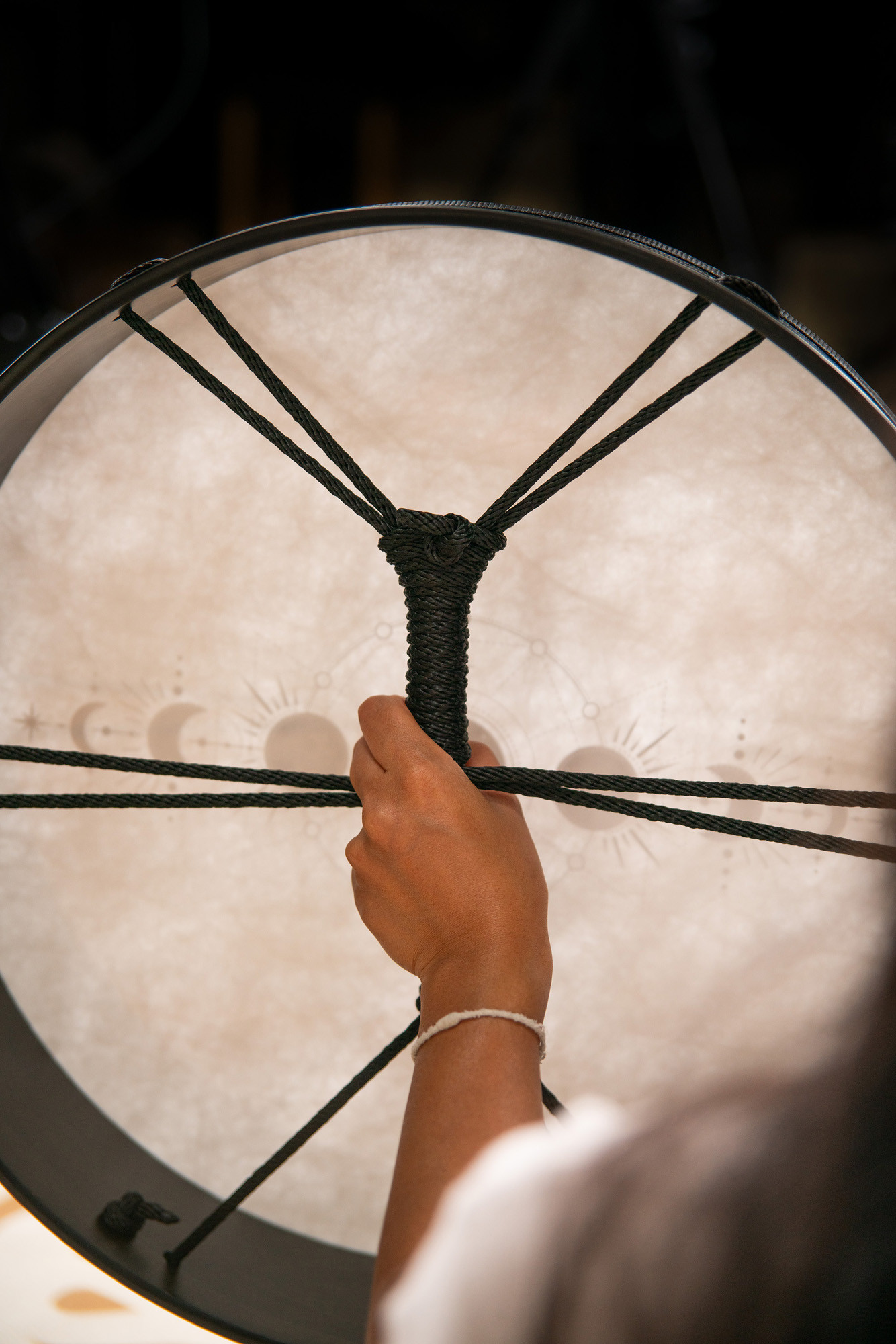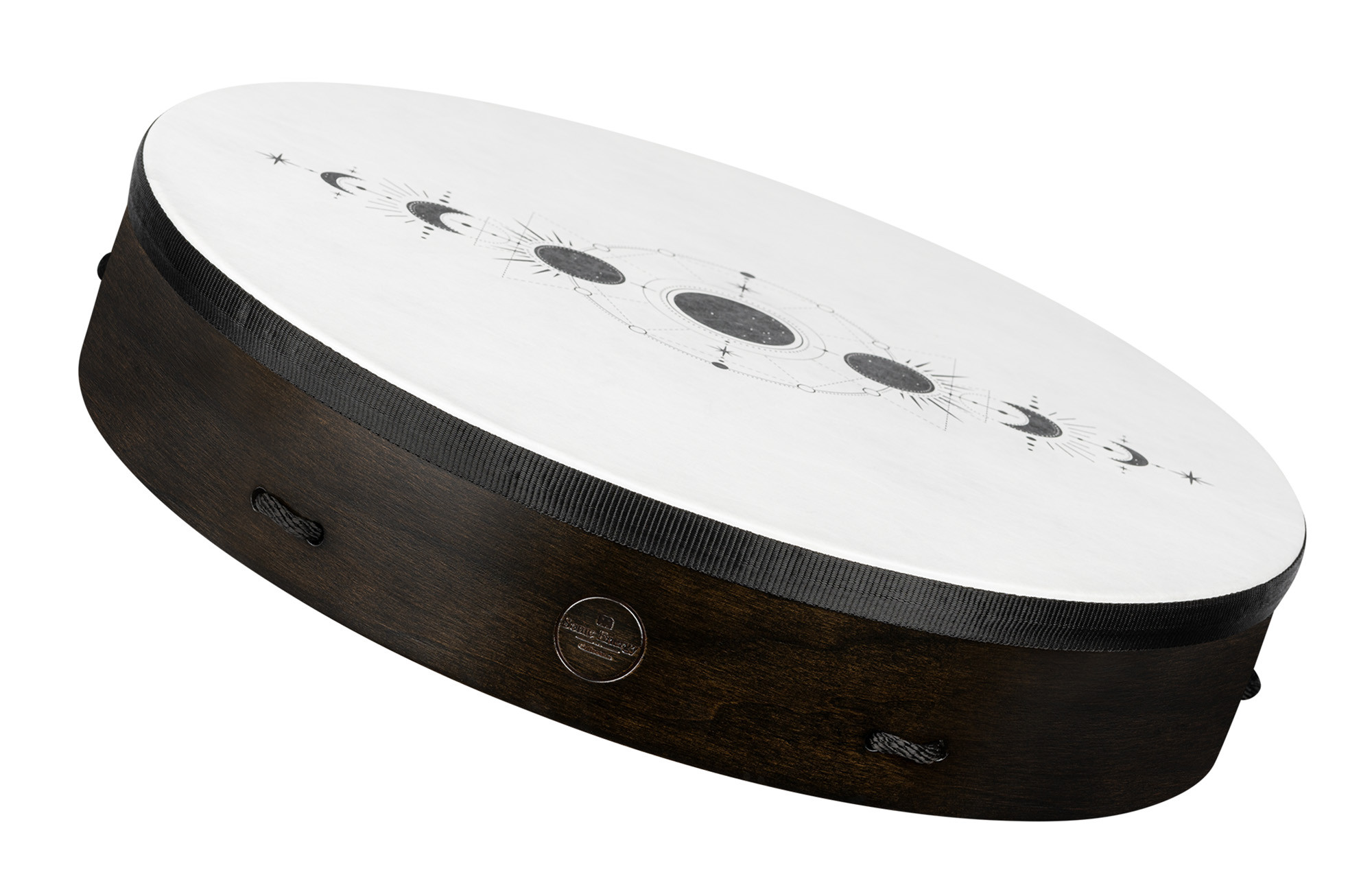 This 18" ritual drum features a design inspired by the phases of the moon. It belongs to the Sonic Energy universe and stands out for its generous size, suited to ritual use and sound practice moments.