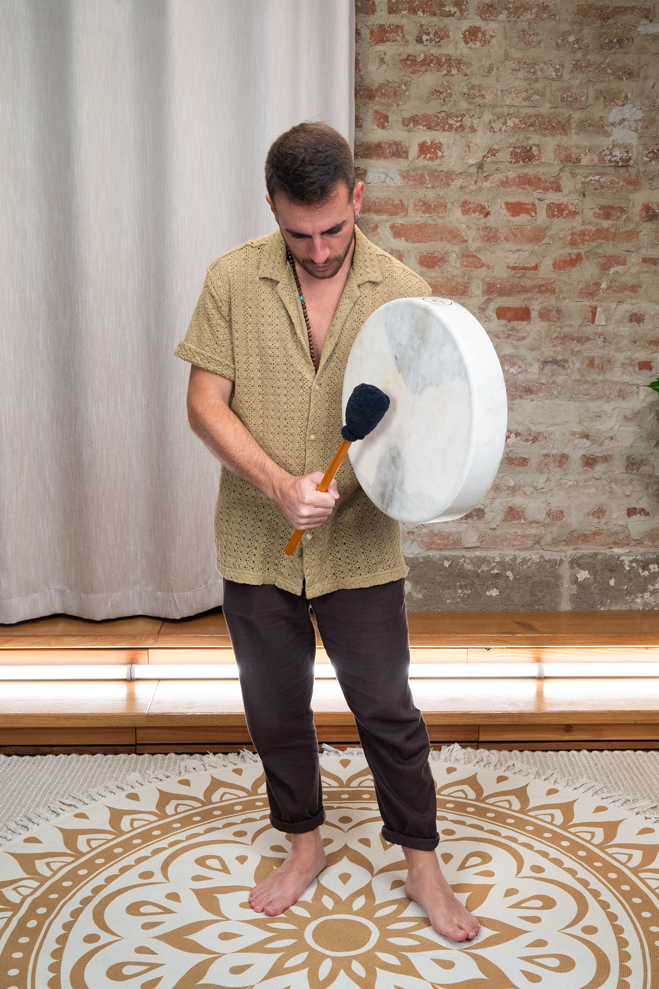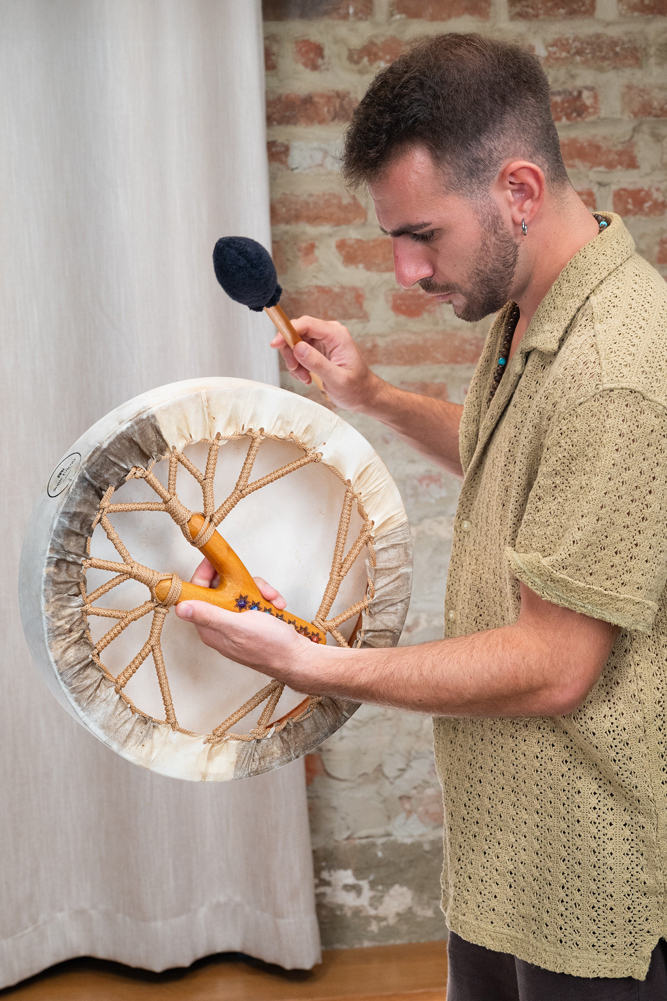 It stands out thanks to its 39 cm diameter, its warm sounds reminiscent of a heartbeat, its chakra-associated stones, and the included accessories, namely a carrying bag and a beater.