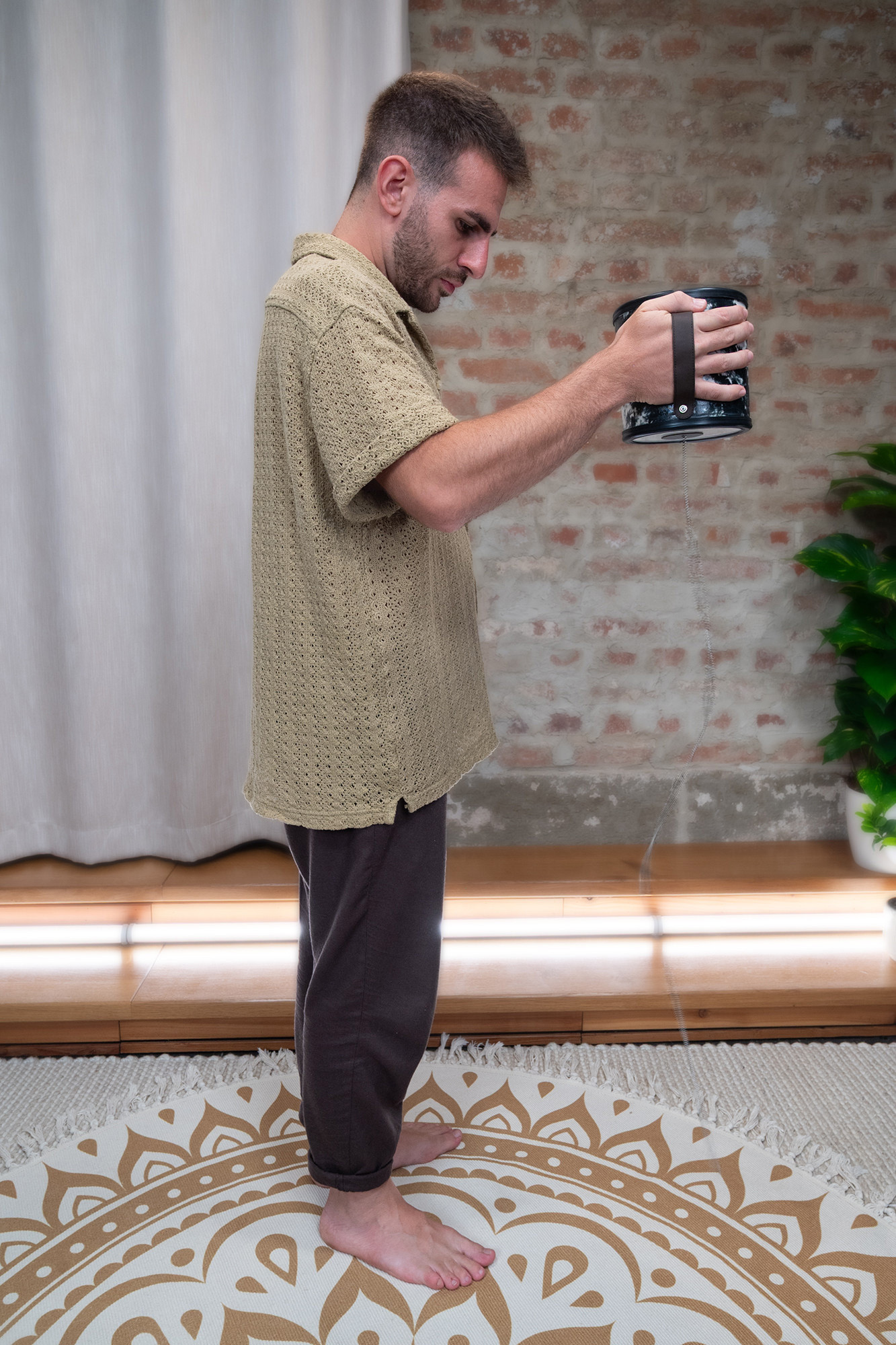 To get the sound of thunder, let the metal spring hang freely and guide it with subtle wrist movements. By tapping the spring with your hand, you create sharper, crackling accents. Opening and closing the hole adds further tonal nuances, enriching the variations.