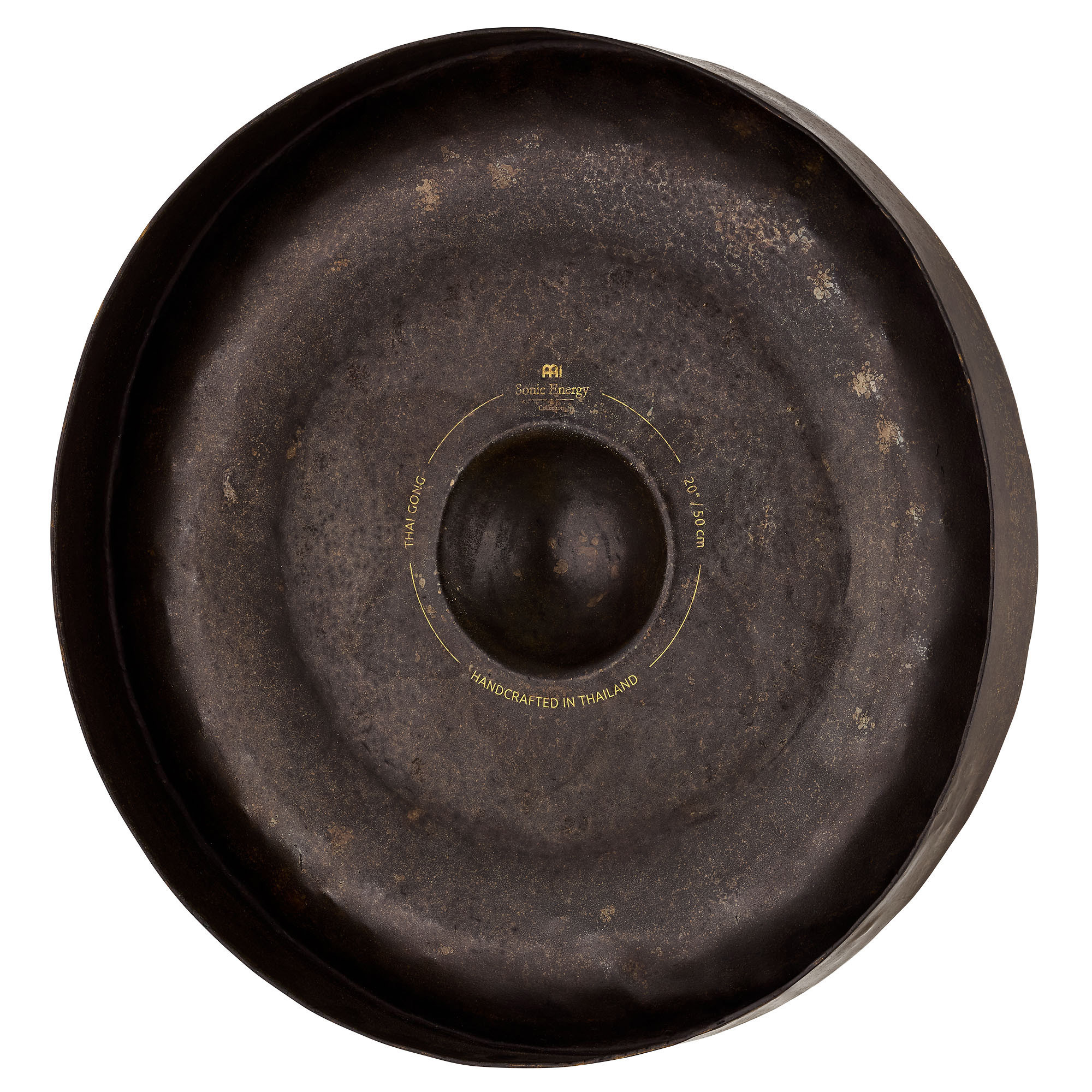 It offers the combination of a 20" size, traditional Thai craftsmanship, and an included accessory made from recycled Buddhist monk robes. It is a relevant choice for those seeking a sonorous gong with an authentic character and a ready-to-use set.