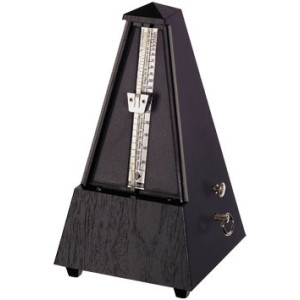 Maelzel model metronome in plastic, with bell, walnut finish.