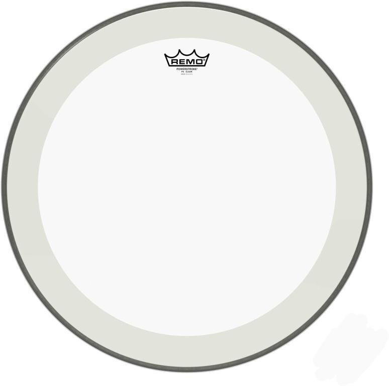 20" transparent Powerstroke 4 drumhead with double ply + clear reinforcement.
