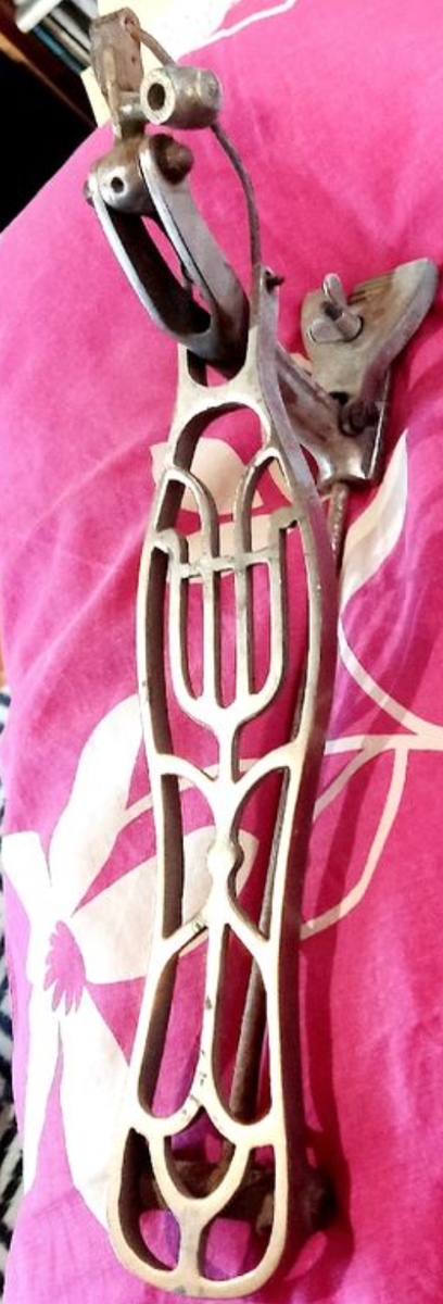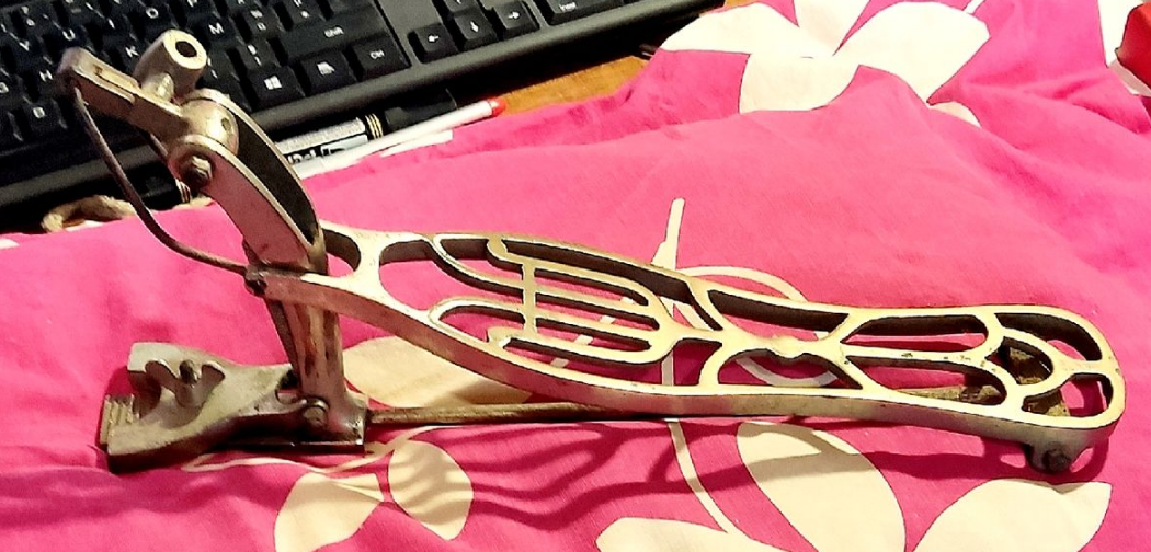 Vintage 1900/1930 bass drum pedal, lyre-shaped design