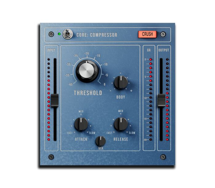 Core Comp’s diverse tonal shaping features give you a vast sonic palette to work with. Whether you’re enabling crush mode on drum rooms, driving the output transformer on vocals, or dialing in some transparent parallel processing, Core Comp’s got you covered, no matter the source.
